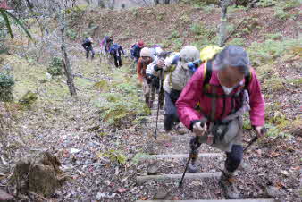 今日は残念ながら、天気が今一つだったため、せっかくの紅葉は晴れなかった。みんなの力を過信したためか、西行庵まで行けなかった。紅葉の金峯神社と西行庵は、来年以降の楽しみにとっておこう。
