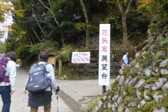 | トイレを過ぎると道も急坂になってきて厳しい、一休みして登っていく。ほぼ登り着くと、花矢倉展望台の看板が出てくる。 |