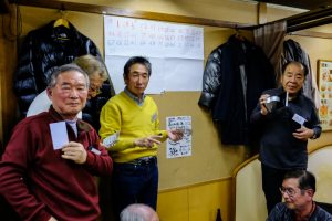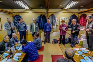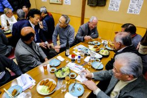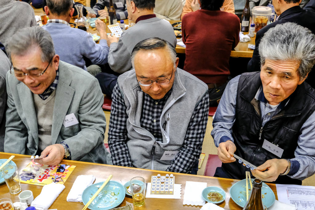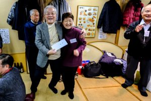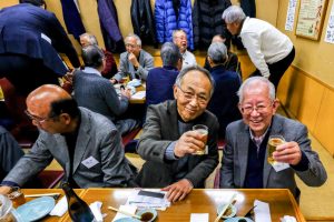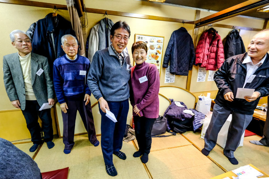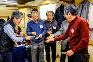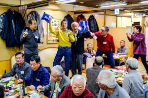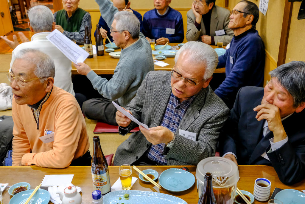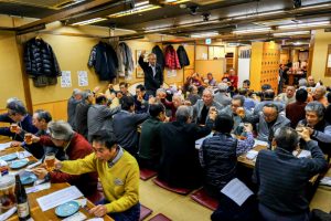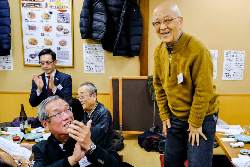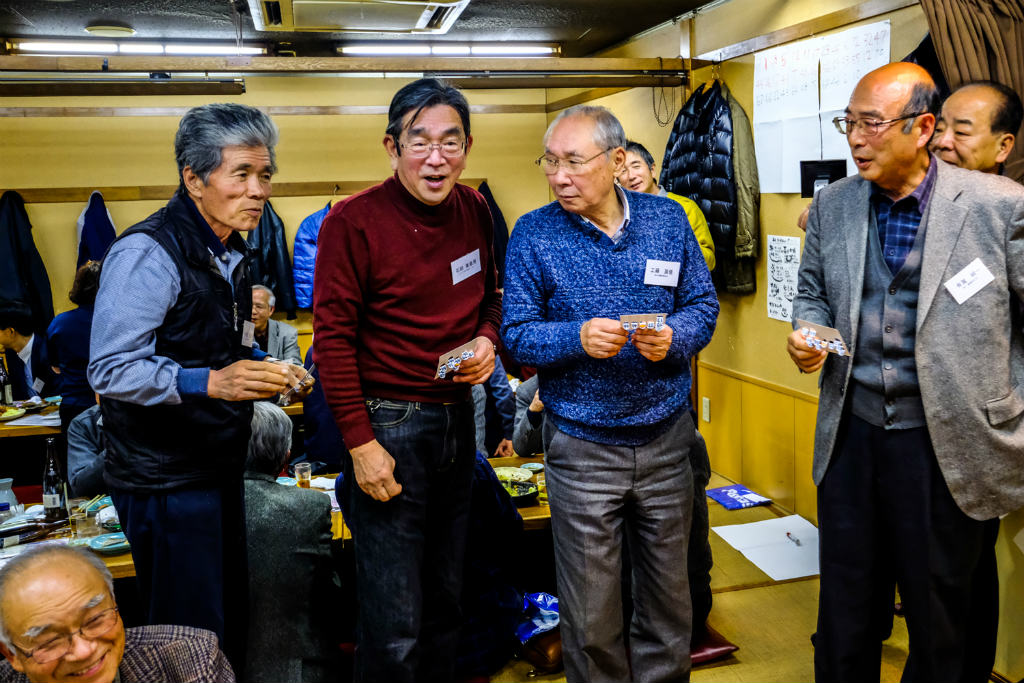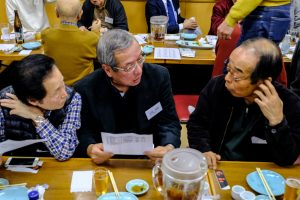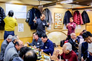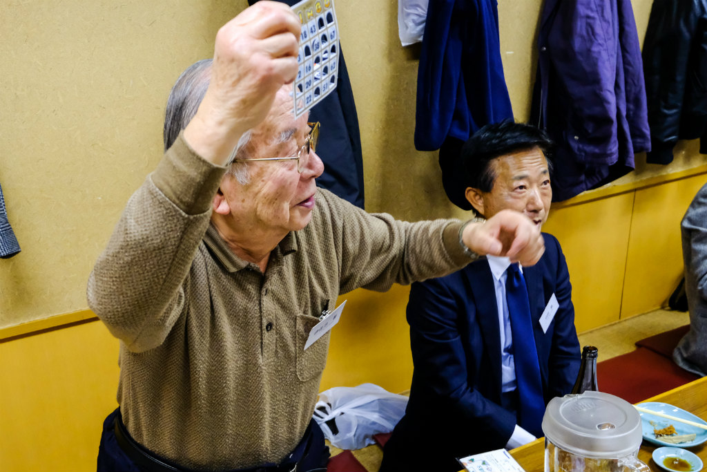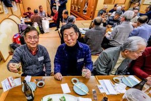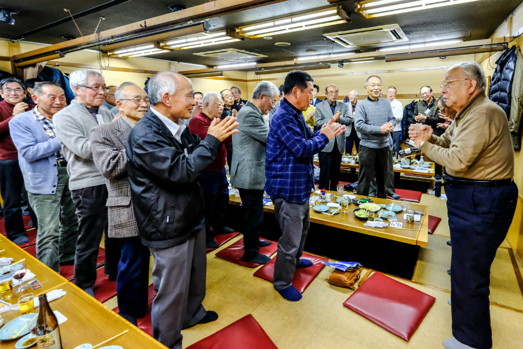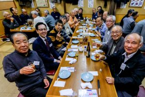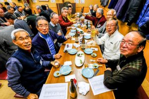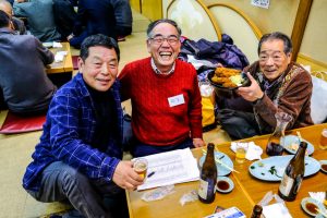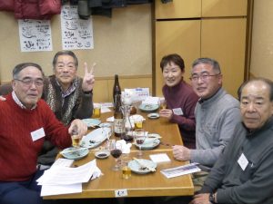 中締めとして最高齢者の伊佐治さんによる三本締めを本間さんの音頭で締め、最後に久保山支部役員 《一本締め》で来年の再会を期して終了しました。参加者全員は笑顔が絶えない、楽しい懇親会と終了出来ました。