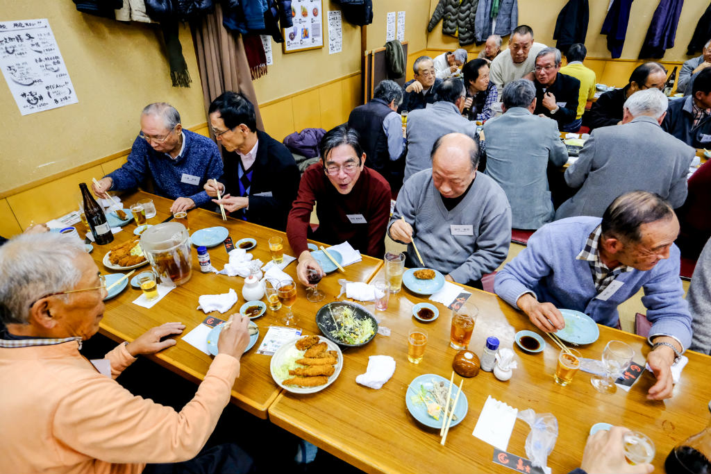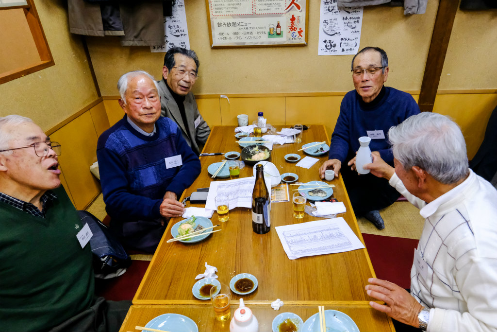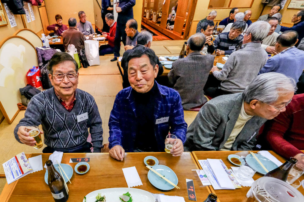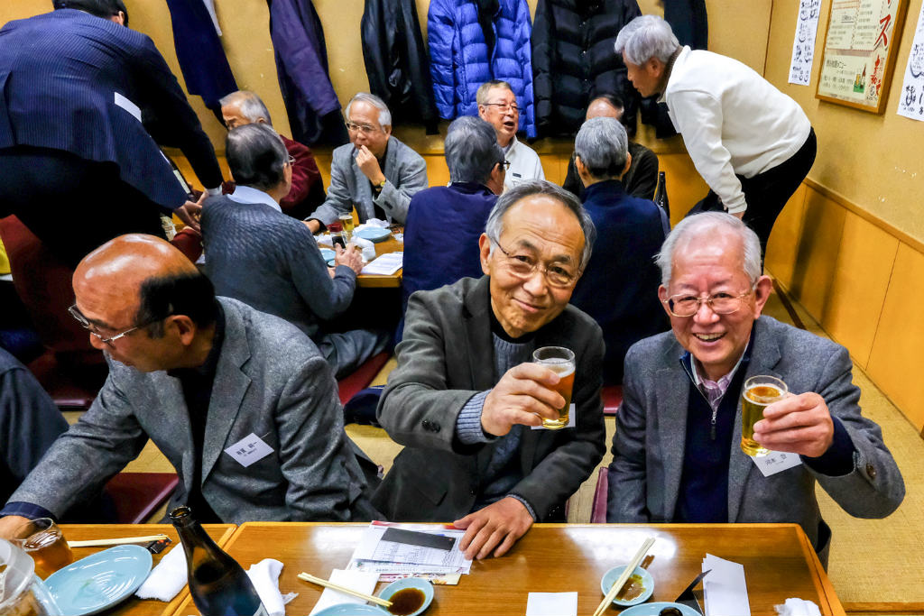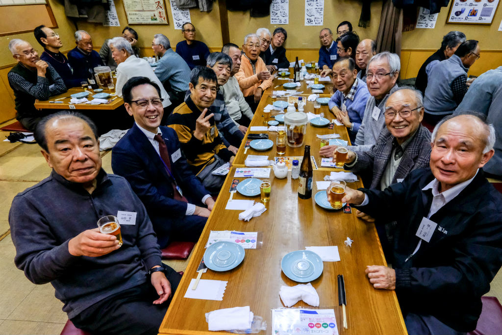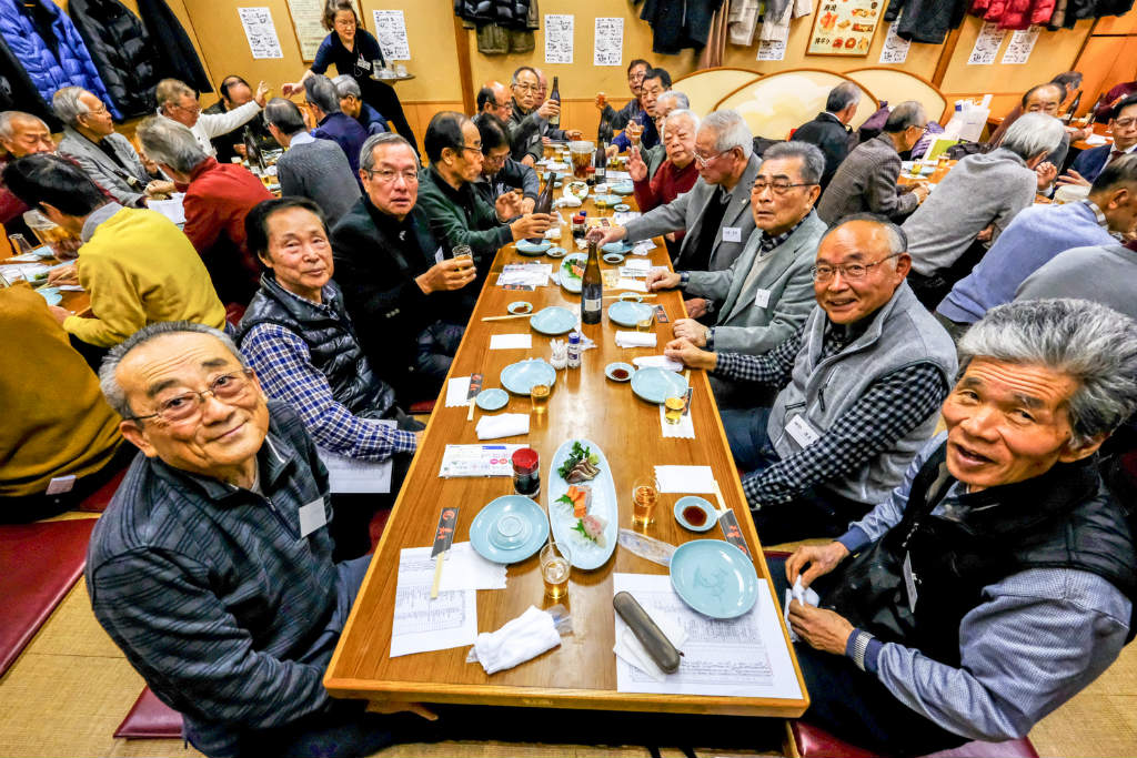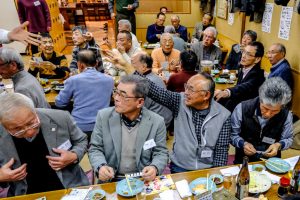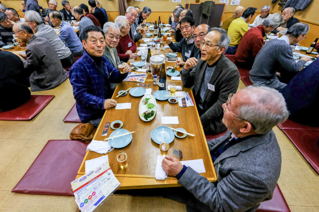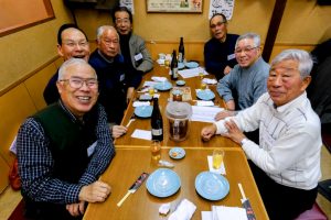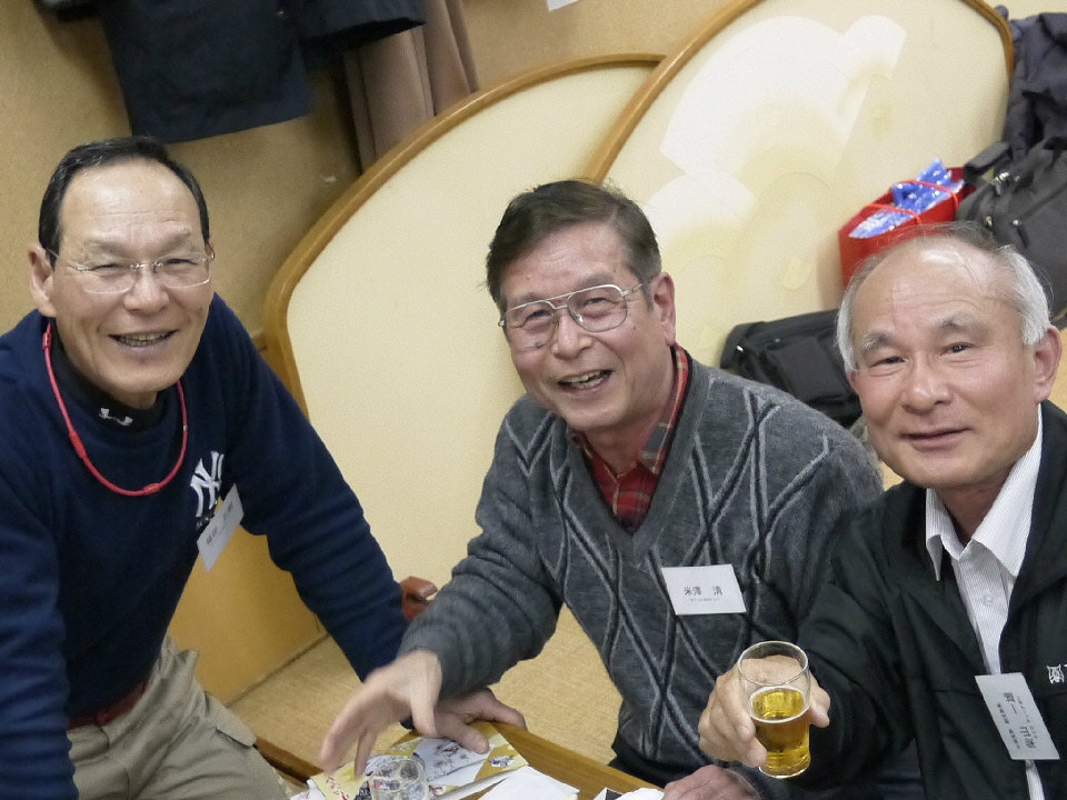 対象者 70歳以上の愛知・岐阜県会員 332名 昨年より70歳以上すべての会員による懇親会で、対象人数は43名増したが参加人数は昨年同様でした。参加者の平均年齢は74歳、80歳以上の参加者5名、最高齢85歳(伊佐治さん)の参加を得て盛り上がりました。