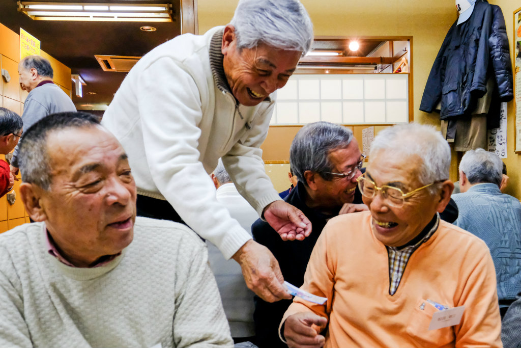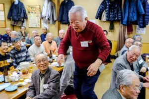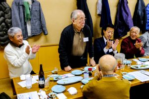 柴山副支部長の挨拶・乾杯でスタートしました。80歳以上4名の方から元気の秘訣をご披露して頂きました。