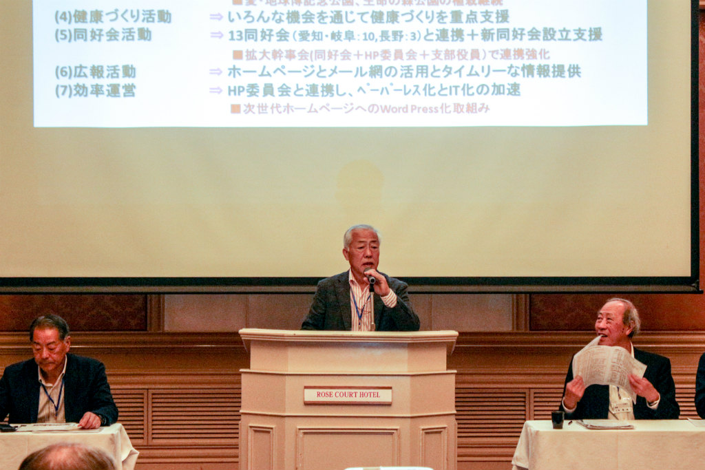 祖父江支部長・柴山副支部長・浦田副支部長(長野)・嶋田分会長(長野)が退任。久保山支部長・山田副支部長・坂本副支部長・重国副支部長(長野)・江藤分会長(長野)が新任。新たに、竹山支部役員・濱小路支部役員・梶谷支部役員・江藤分会長が加わりました。また、新たに顧問として、退任役員4名・安藤さんに就任をいただきました。