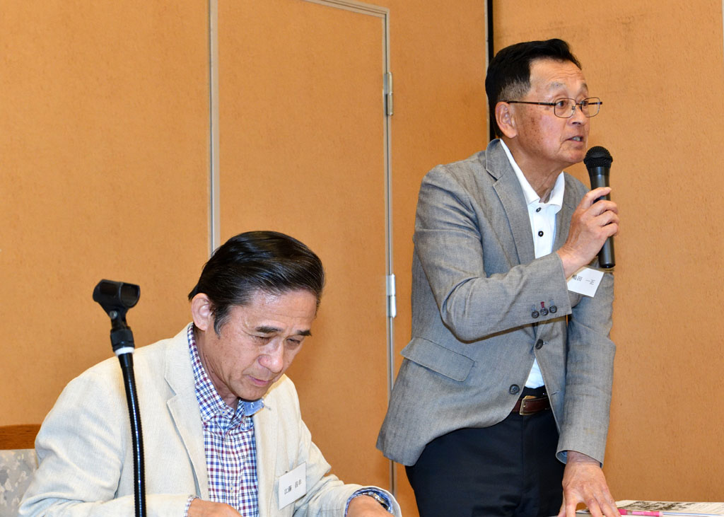総会は重国新副支部長の司会で開始、スローガン唱和、物故者への黙祷の後、久保山支部長より本部総会と中部支部総会の内容について報告頂きました。