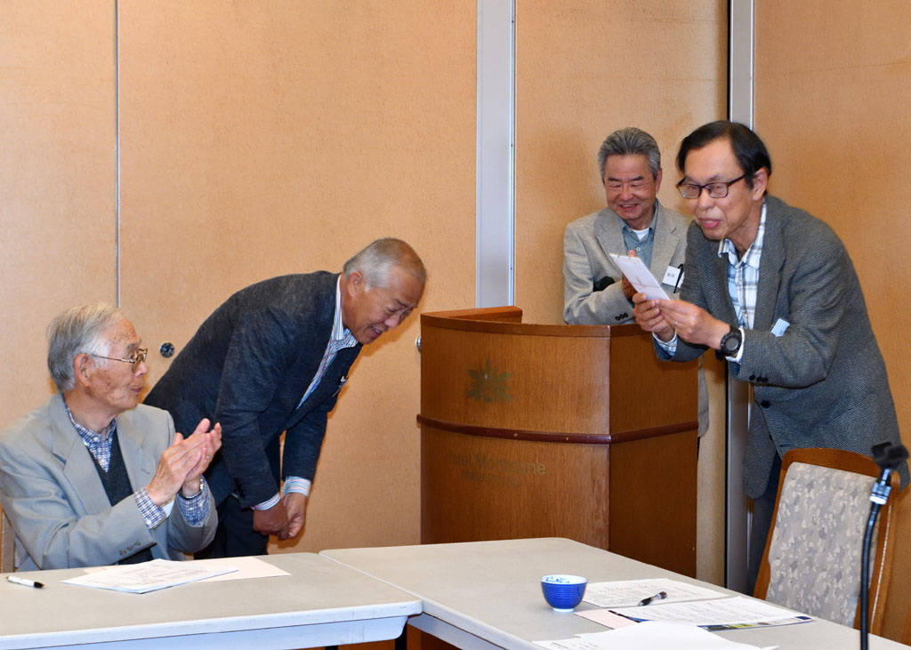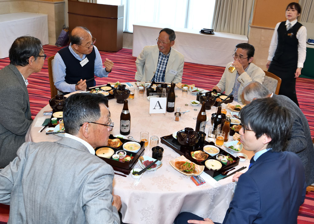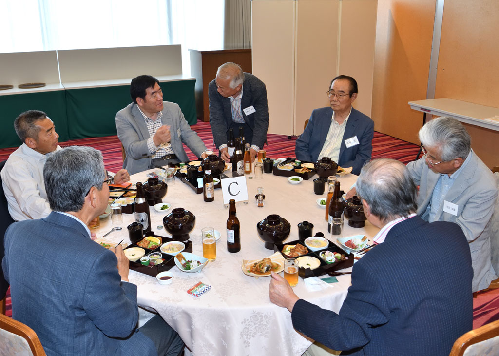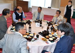 懇親会は引き続き重国新副支部長の司会で開始、最初に来賓のパナソニック保険Sの山田課長の挨拶の後、江藤新分会長の発声で乾杯、懇談に入りました。 久振りの再開に近況報告に話が弾み親睦を深めることが出来ました。 最後は前分会長の嶋田の三本締めで閉会しました。