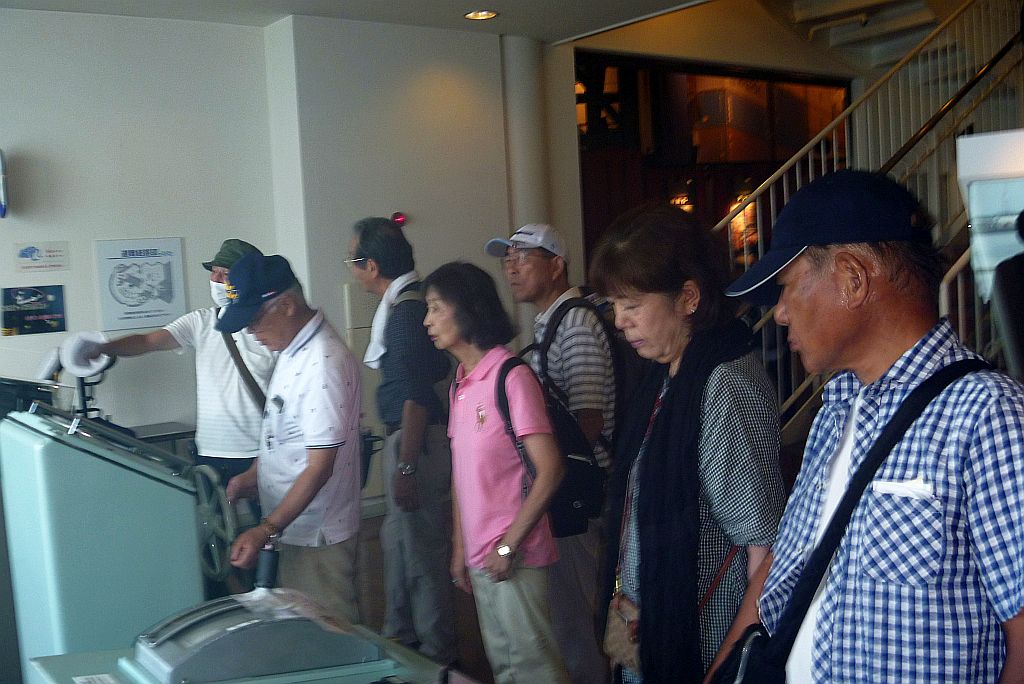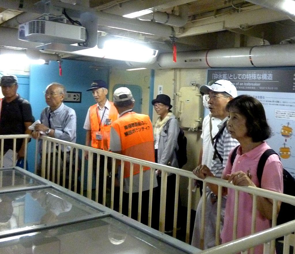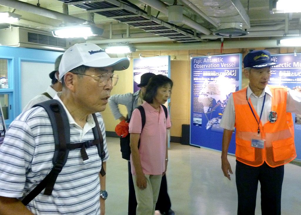 見所②南極観測船「ふじ」の船内見学はボランテイアの方から 艦内説明や役割等の説明に聴き入りました。