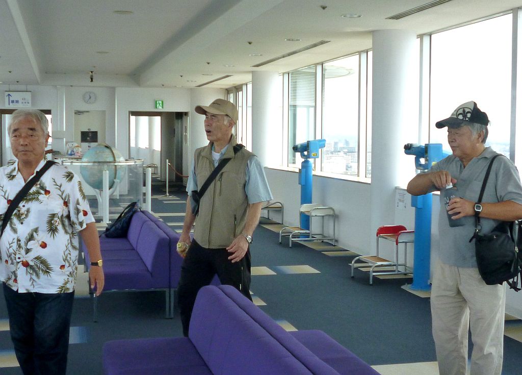 望所(地上53m)では名古屋港一望と、遠くは木曾御嶽山、伊吹山御在所鈴鹿連山等普段見ることのない展望を鑑賞する。然し残念、天候不順で雨にこそ見舞われなかったが遠くは展望できませんでした。
