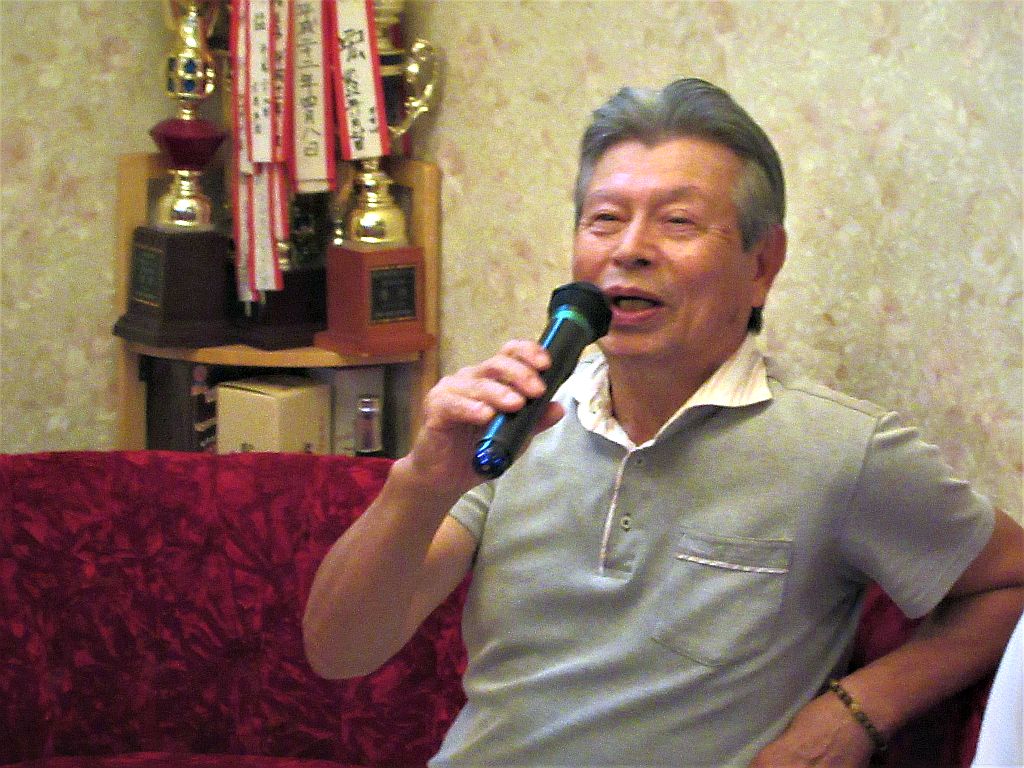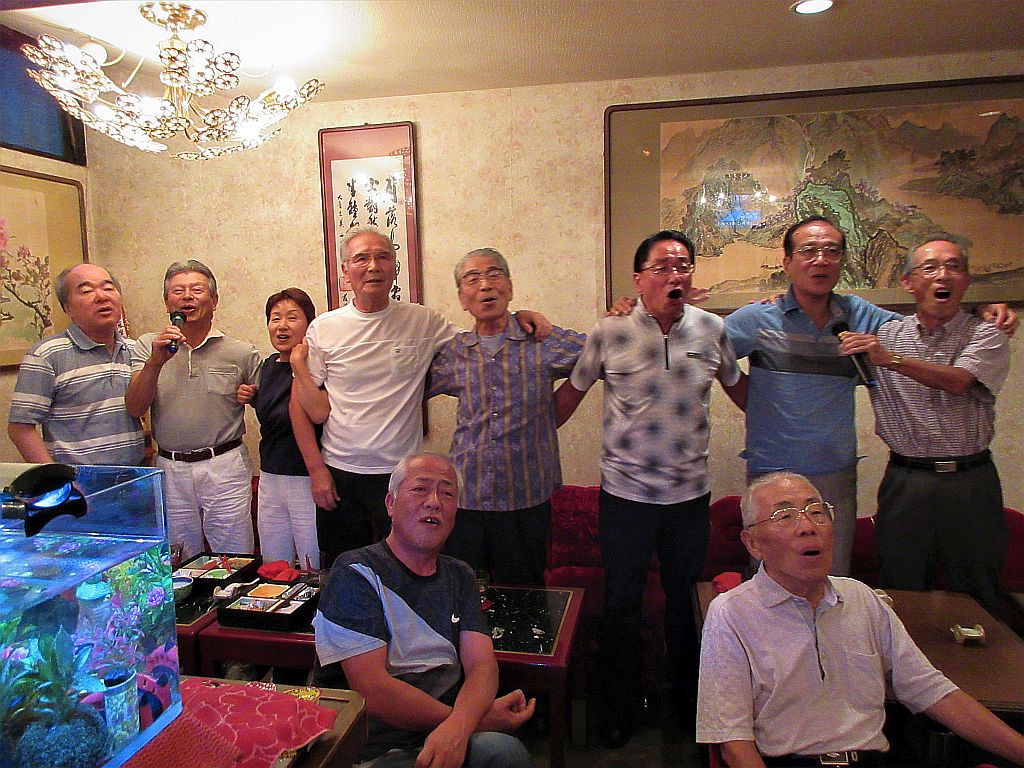 時間は足早に過ぎ去り、一次会で引き上げる歌い人のため会テ-マソング『海・その愛』