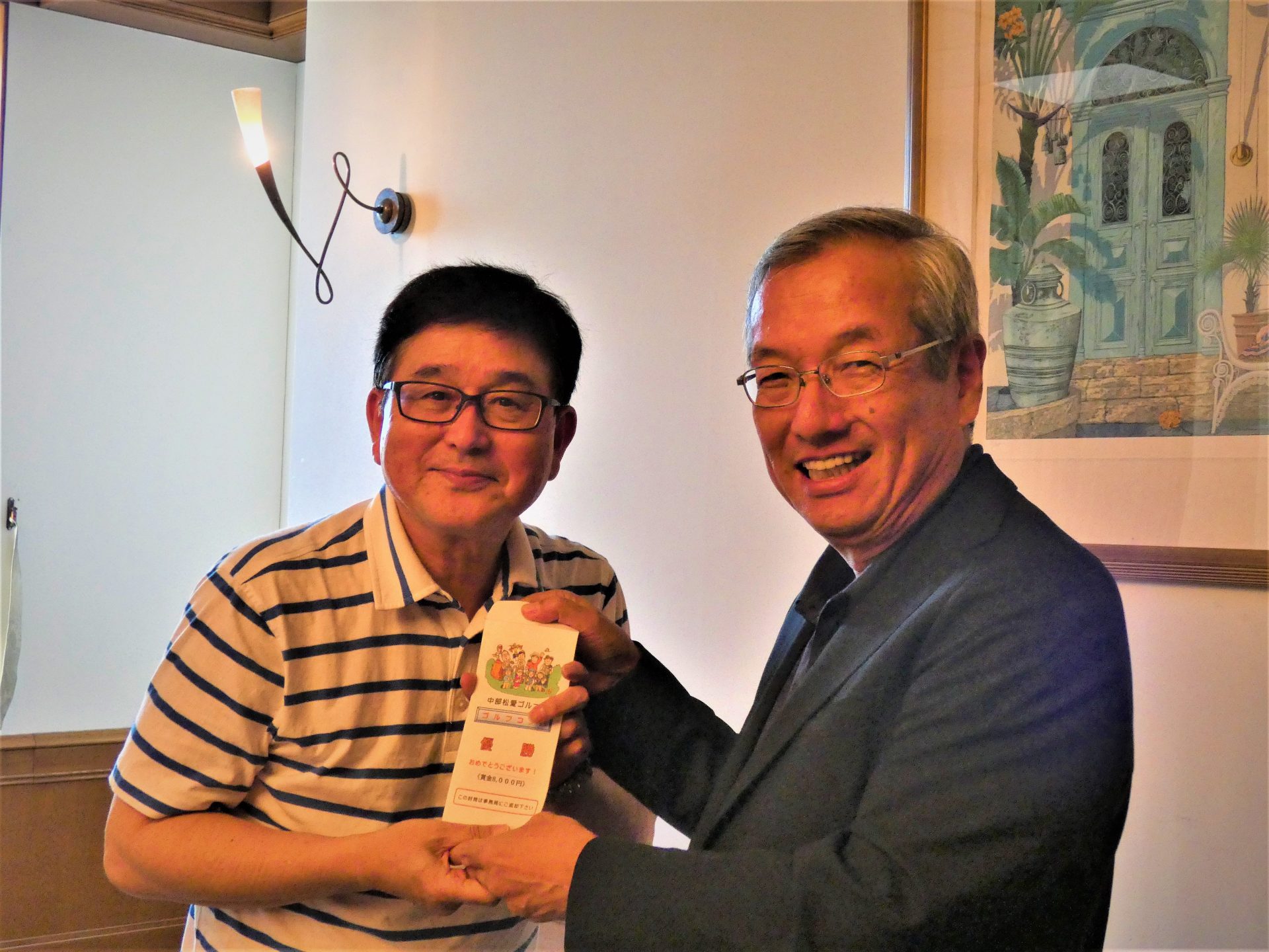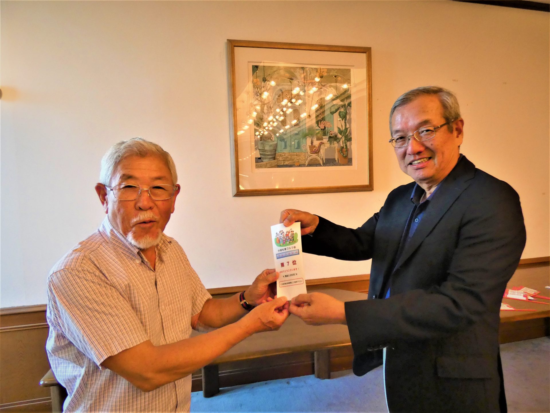 森さんは、コンペ参加回数は少ないのですが、普段の練習の成果が出たようでOUT40、IN44と安定したゴルフでした。 ゴルフ場のハーフコンペも優勝でダブル受賞となりました。・ニアピン:森さん*2.宮本さん、肥田さん、久保山さん、石川さん*2 吉村さん