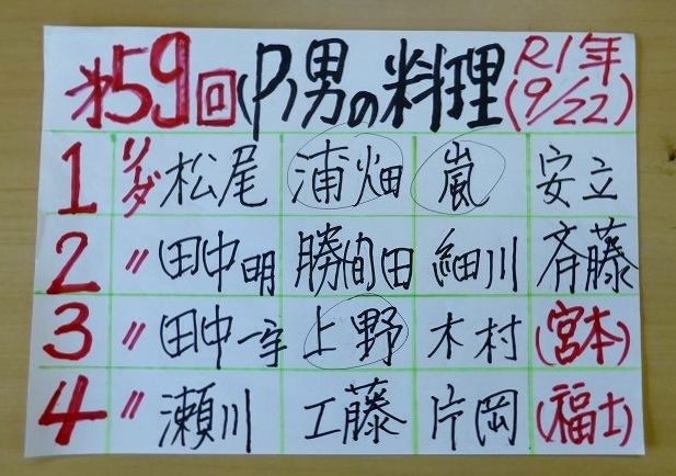 メニューは中華です。 ご希望メニューありましたら会長まで連絡下さい。
