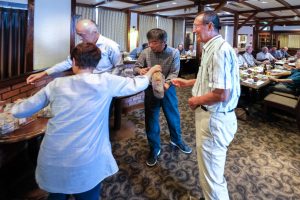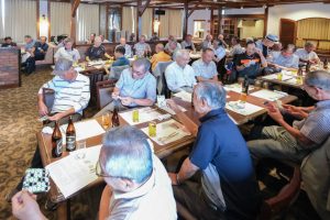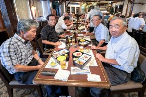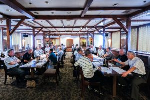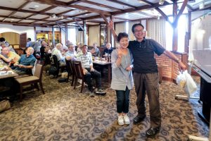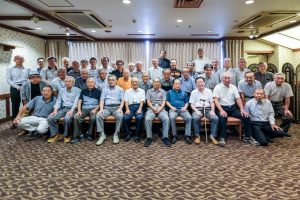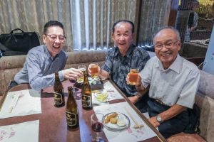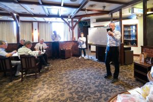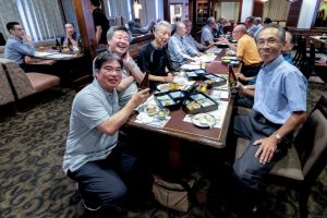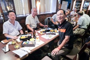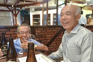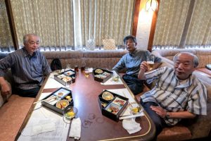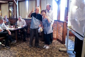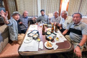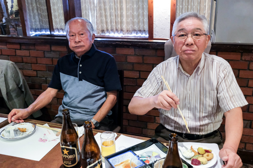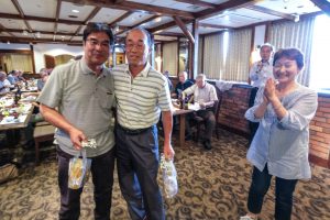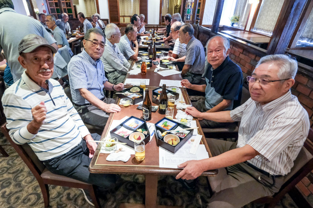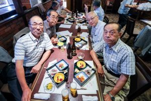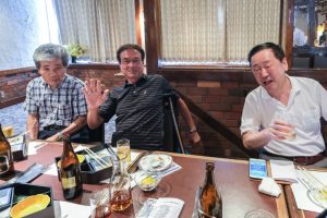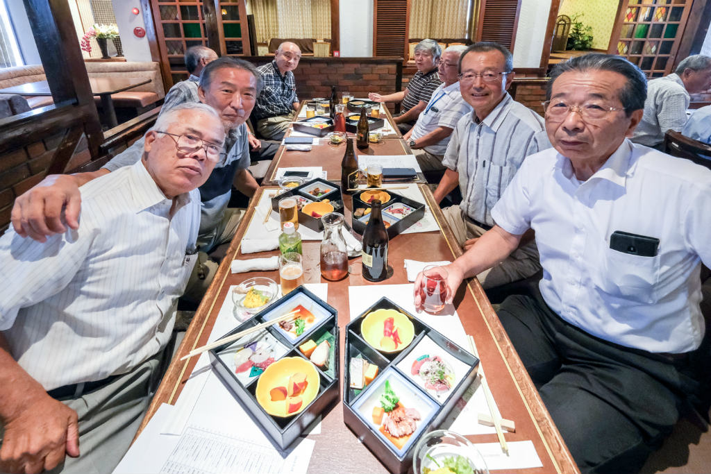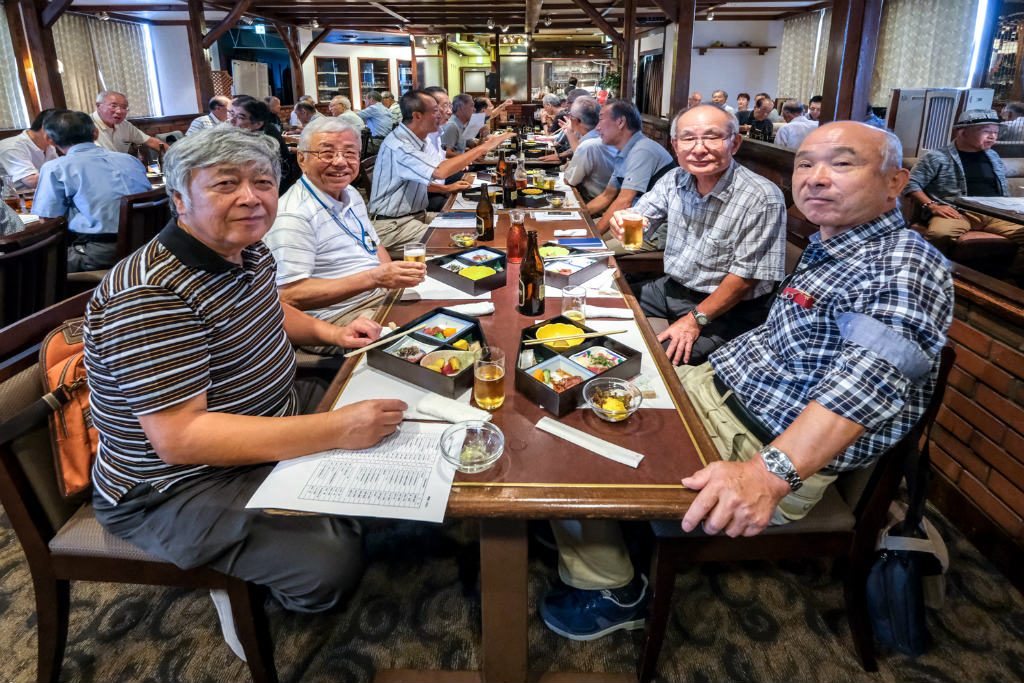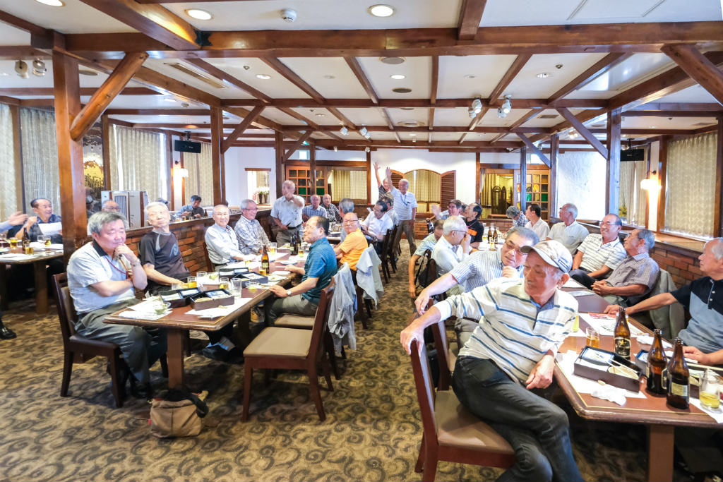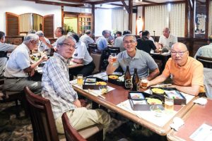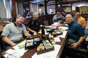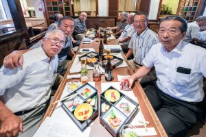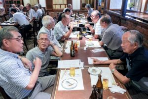 先ずは全員で記念写真を撮影後、出席者の中での最年長であられる大野さんの乾杯で静かに開宴いたしました。久しぶりの再開の方々も多く現役時代の話題や最近の健康状況など近況報告が一段落してから、今回初参加の新入会員の田邊さんにご挨拶いただきました。