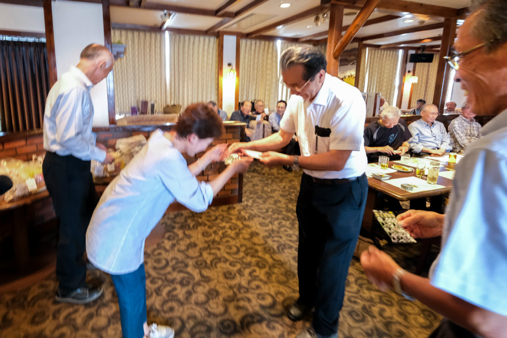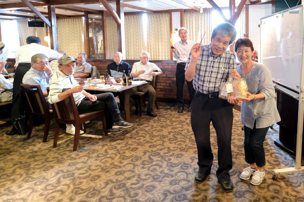 引き続いて世話役の方で予め準備していた豪華賞品争奪ジヤンケン大会、ビンゴゲームと進み、宴はおおいに盛り上がりました。