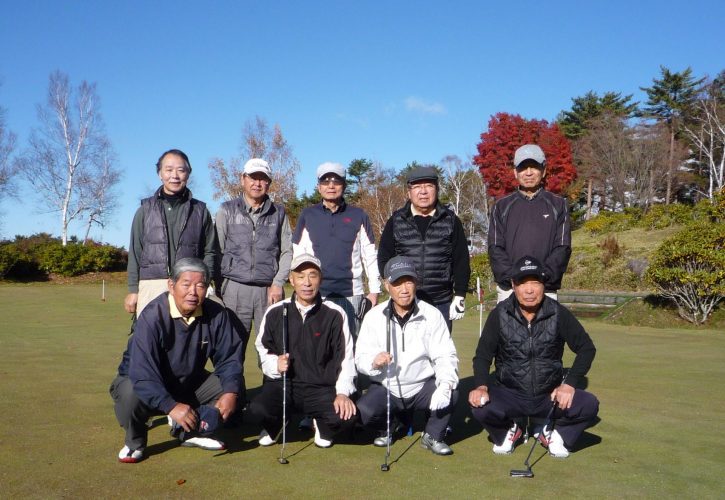 *11月に入るや朝晩は零下まで気温が落ち、里も紅葉が日々進んで、ここ八ヶ岳の麓は紅葉も後半となり、落ち葉が凄くフェアウェイに打ったゴルフ球でさえ探すのが大変で、あわやロストボールになりかねない状態であった。 しかし天候は晴天の秋空のもと、素晴らしい景色で、気持ち良くプレー出来ました。今年最後になる11月例会は全員何らかの賞を貰える様にし、多数参加を期待したがいつもと変わらず9名の参加と寂しい物であったが、楽しく親交を深める事が出来ました。