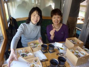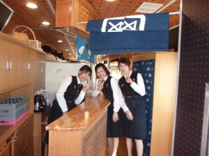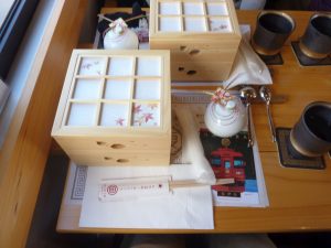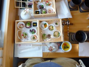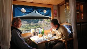 車窓の景色も気になりつつ、懐石料理もお酒も美味しくて