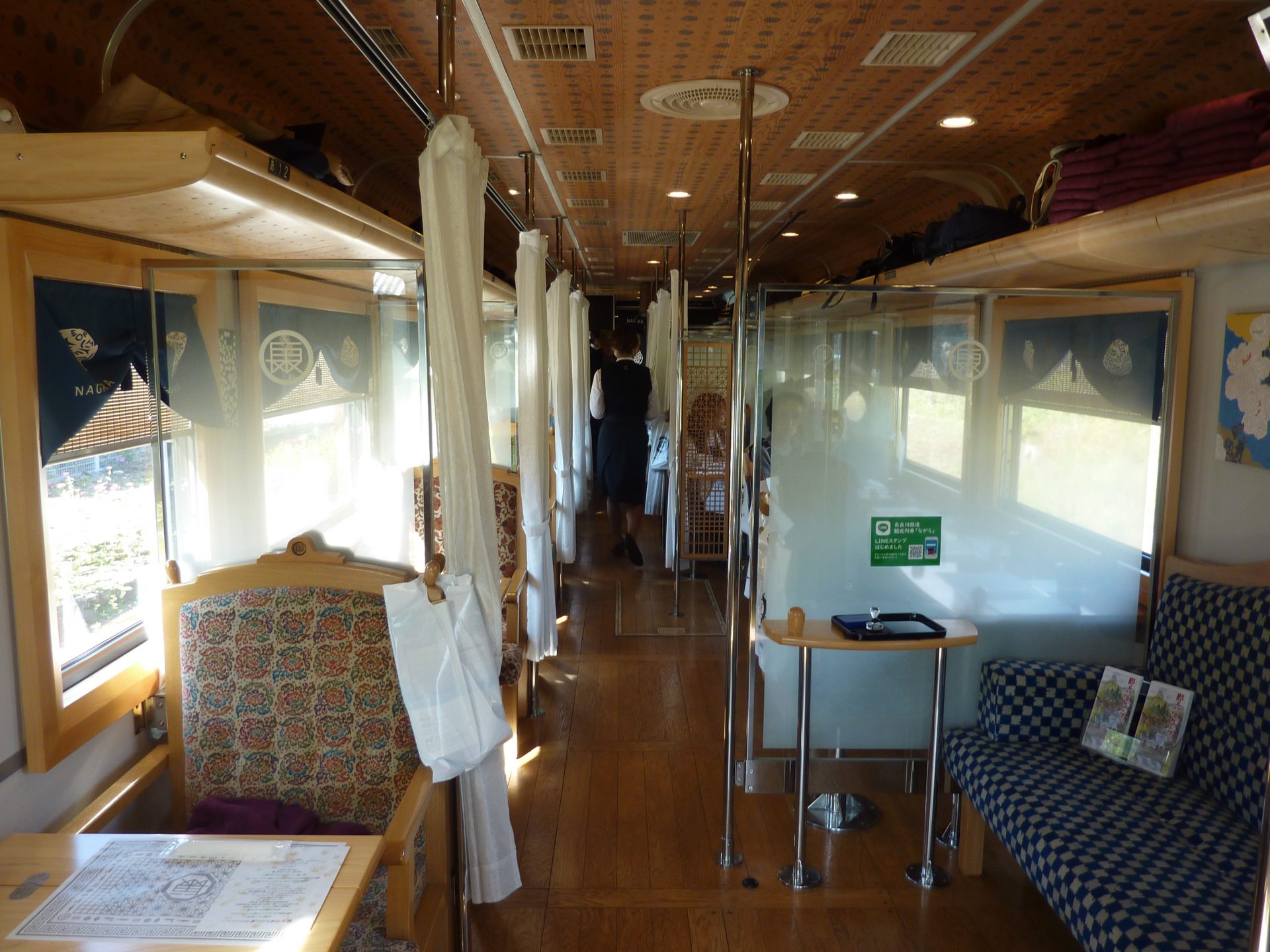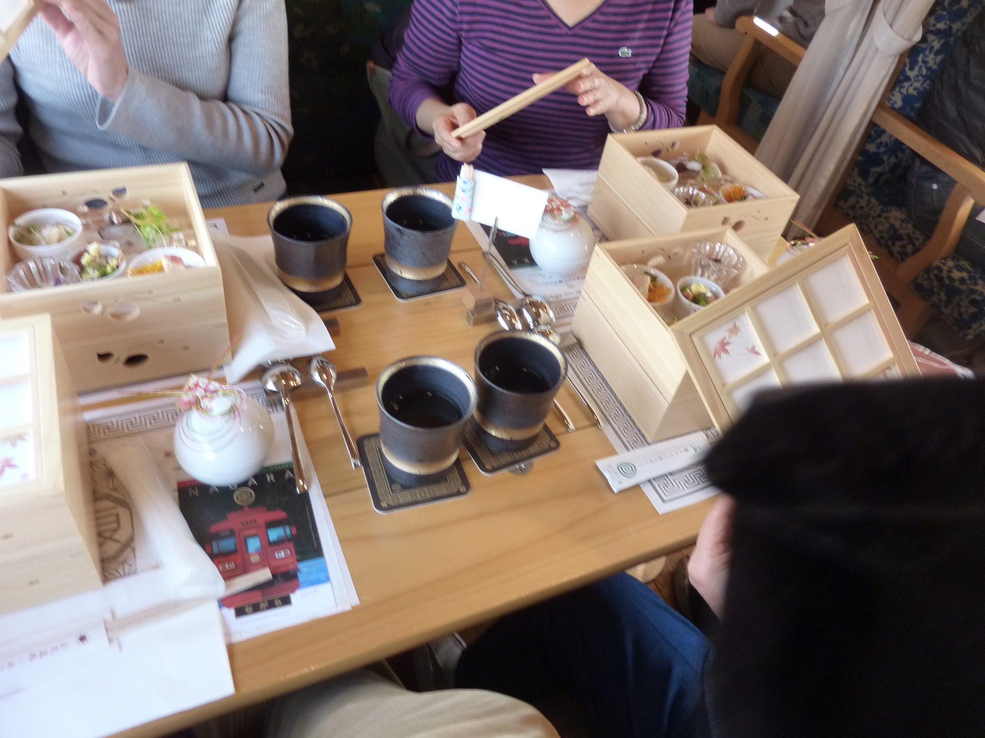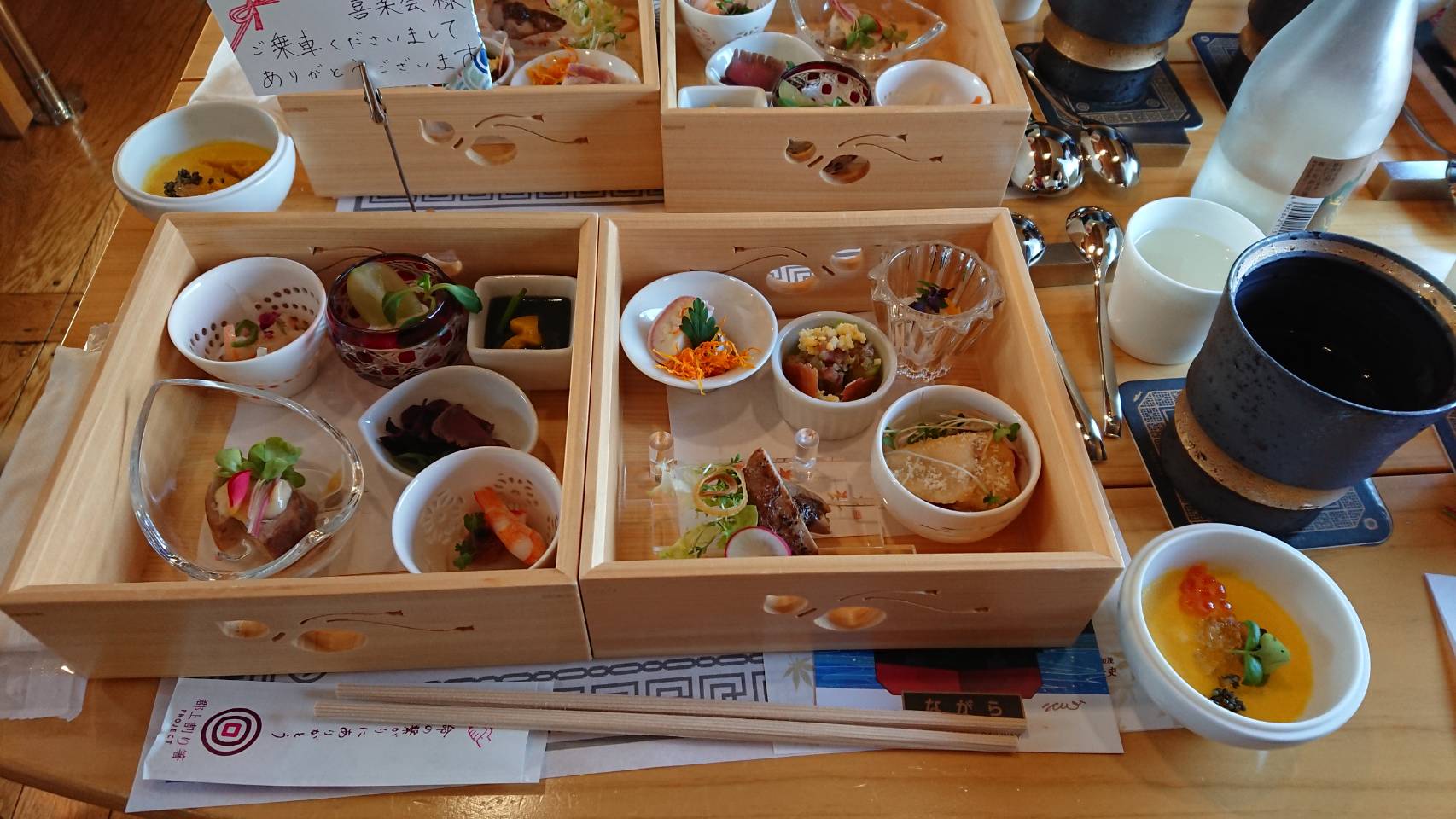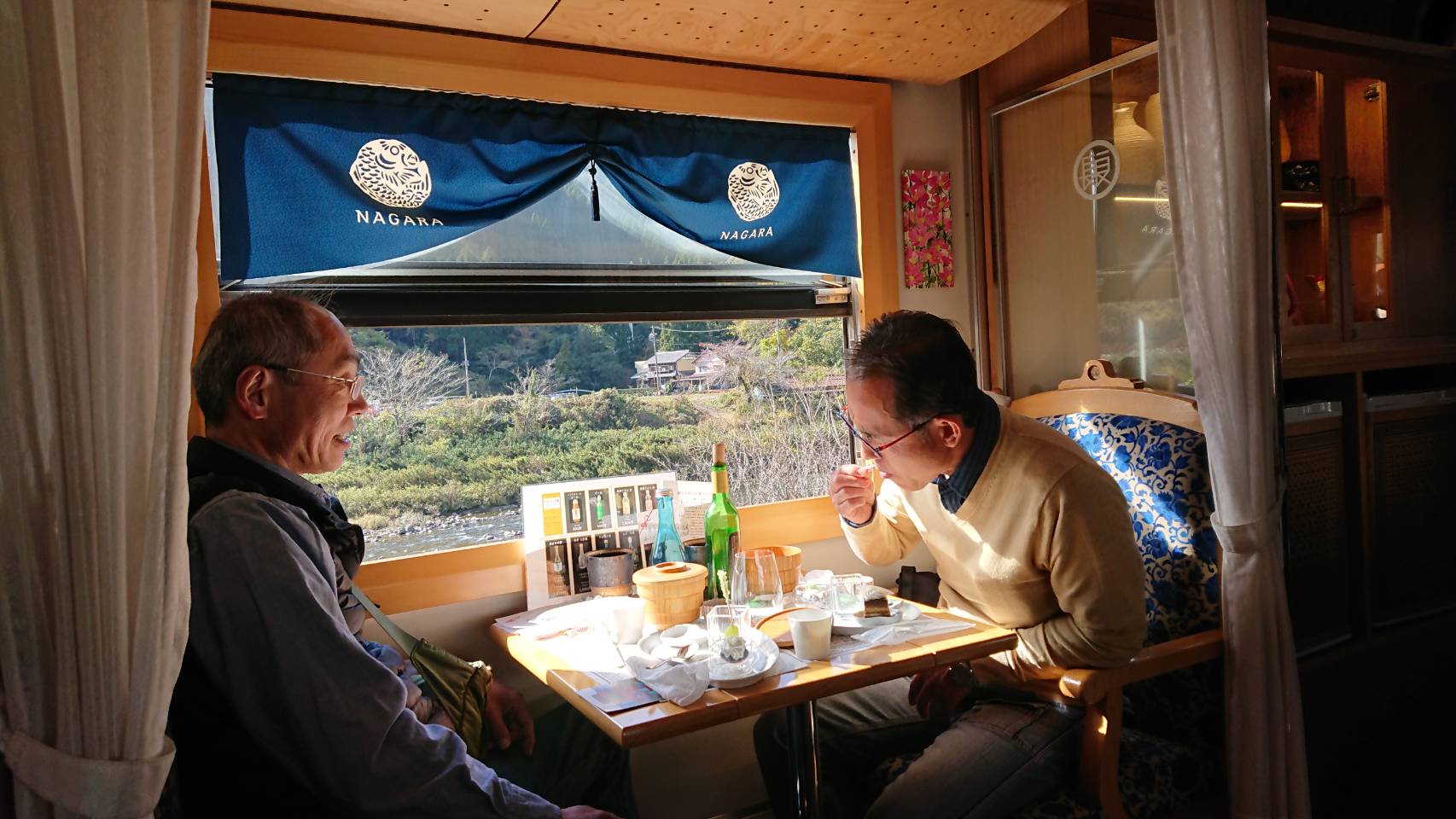 車窓の景色も気になりつつ、懐石料理もお酒も美味しくて
