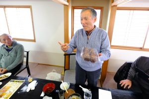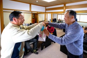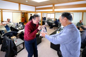 後半には幹事の池本さんが事前に準備をいただいた豪華景品の抽選会を実施、また、南さんからは干し柿の提供があり、笑顔が溢れる懇親会となりました。お世話を頂いた幹事さんに感謝申し上げます。