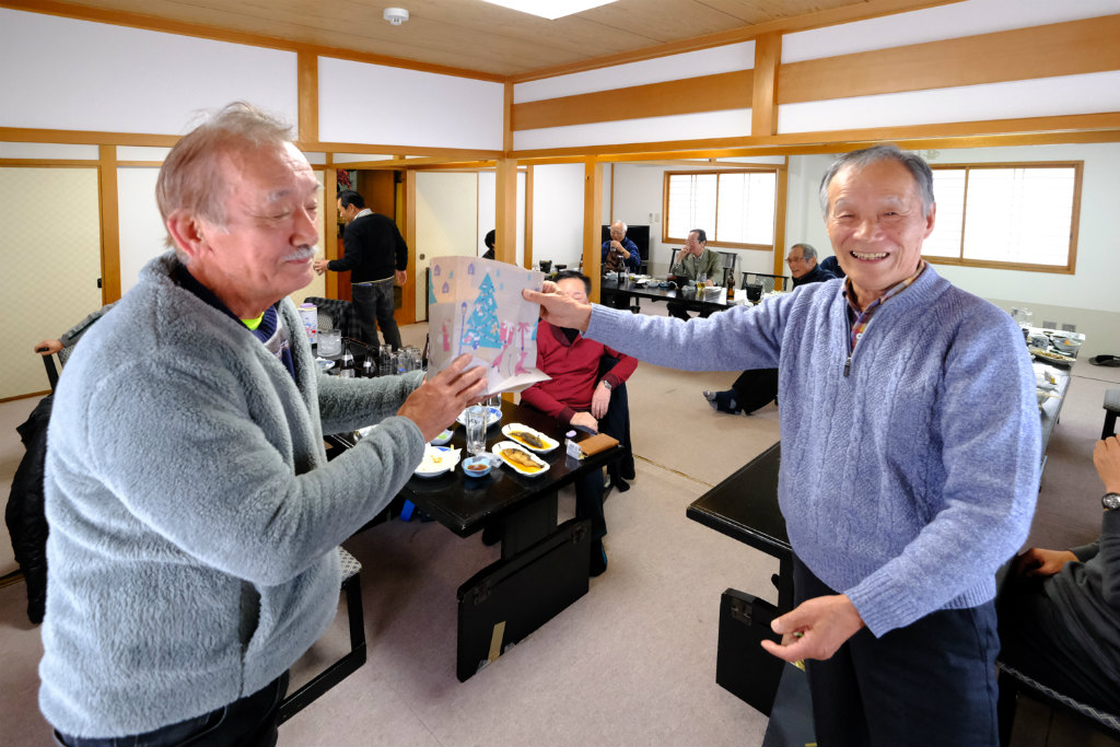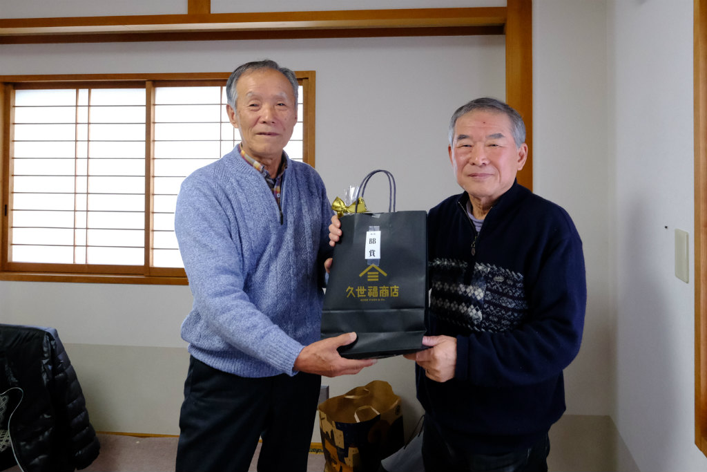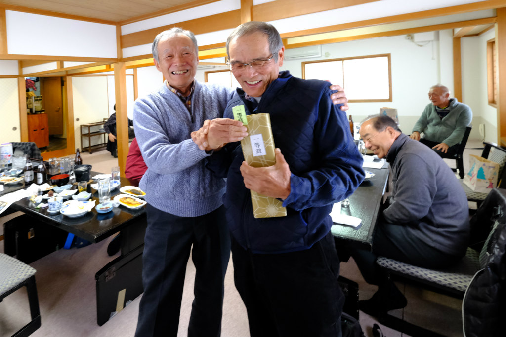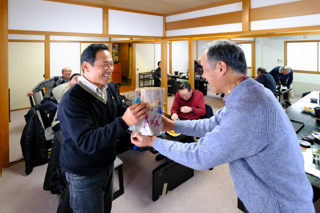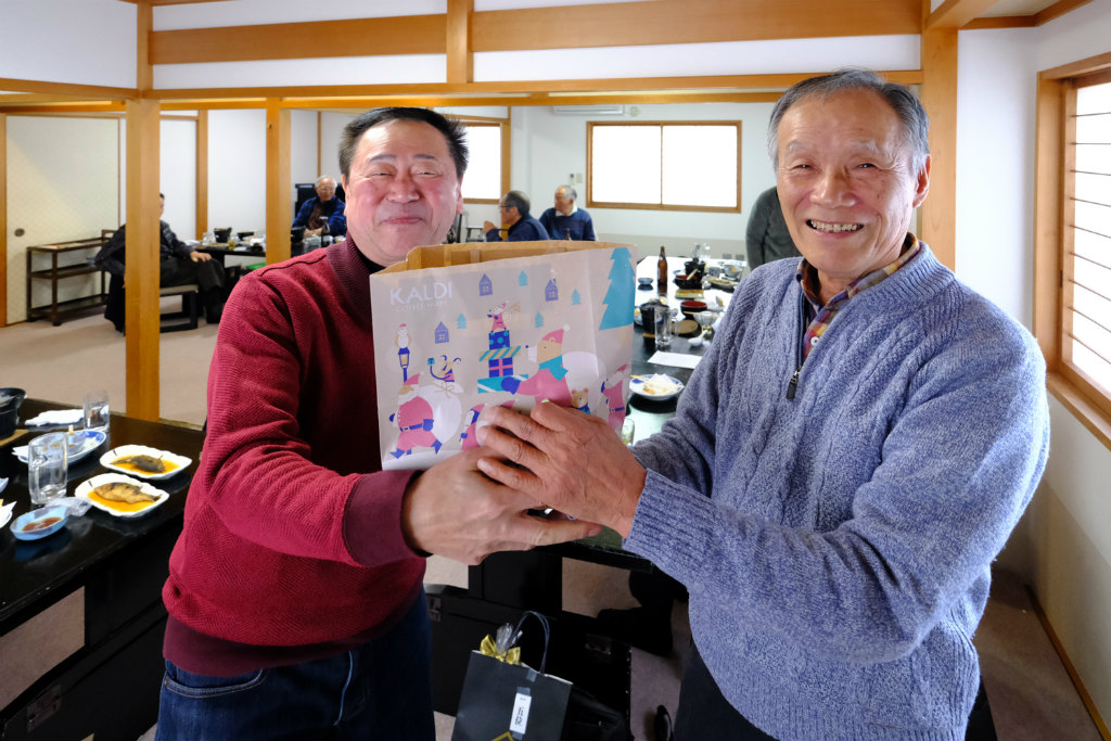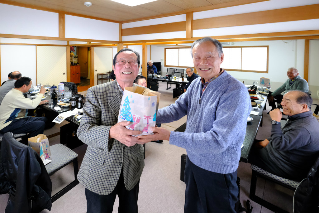 後半には幹事の池本さんが事前に準備をいただいた豪華景品の抽選会を実施、また、南さんからは干し柿の提供があり、笑顔が溢れる懇親会となりました。お世話を頂いた幹事さんに感謝申し上げます。