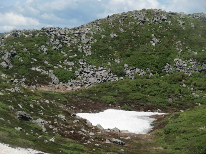 1000m程の山なのに 窪地に残雪が・・・さすが北海道