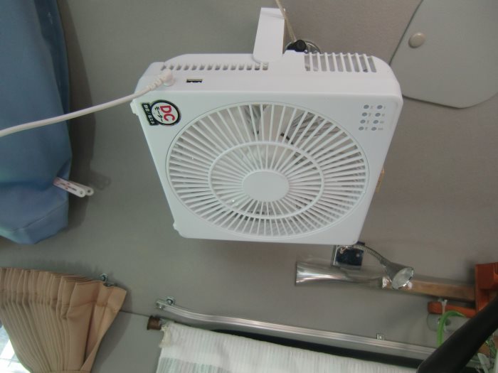 室内天上に扇風機・・・多少の風でもすこしは涼しい100V電源で稼働