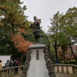 公園では 織田信長が桶狭間の戦いに 出陣した時の雄姿像と・濃姫像。 信長と清洲城の年表で少しお勉強を五条川(春は桜)沿いに 東海道新幹線をくぐり清洲城に 例年は散っている、もみじも色鮮やかに見頃でした。