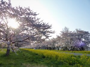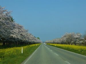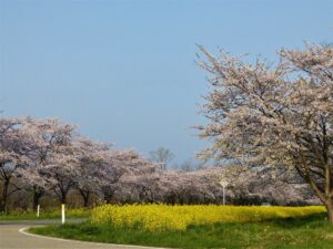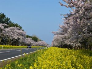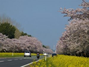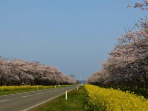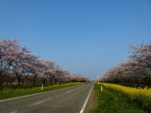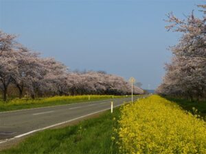 大潟村の中央を貫く県道298号線沿い約11kmに渡り咲き誇る “桜”と菜の花の