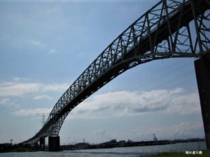 ③ア-チ 橋:上向きに弧を描く曲がりをつけた梁(ア-チ)が主体の構造