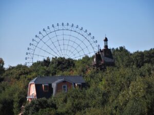 な世界観をイメ-ジ したランドマ-クのエレべ-タ-塔が存在する。