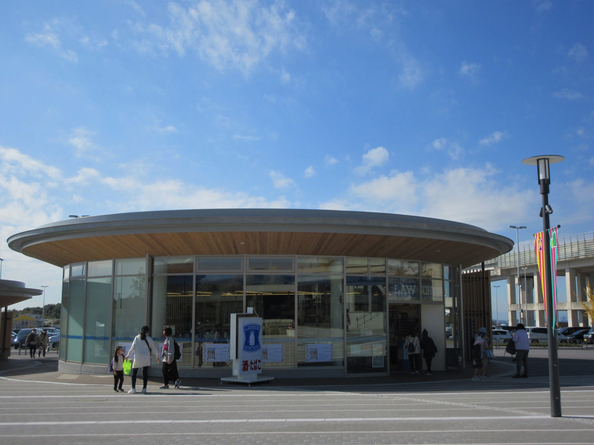 新設され、案内所やカフェ、コンビニ、ショップなど円柱形の建物がある。