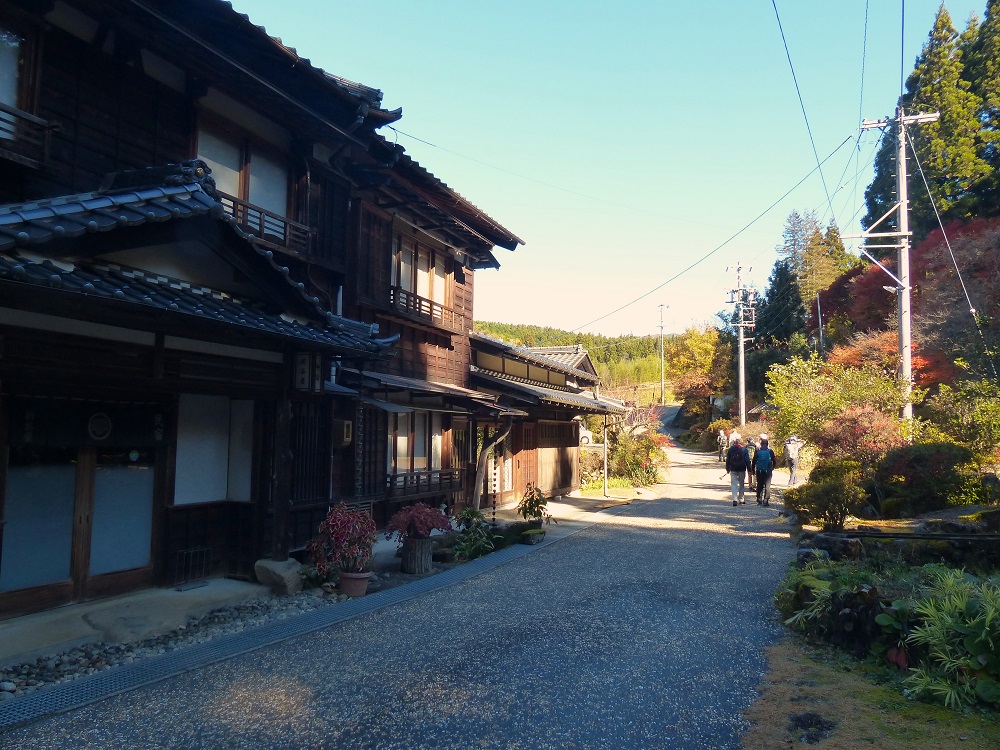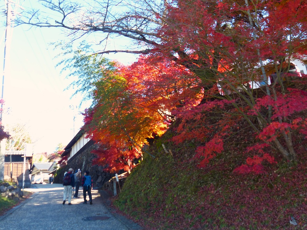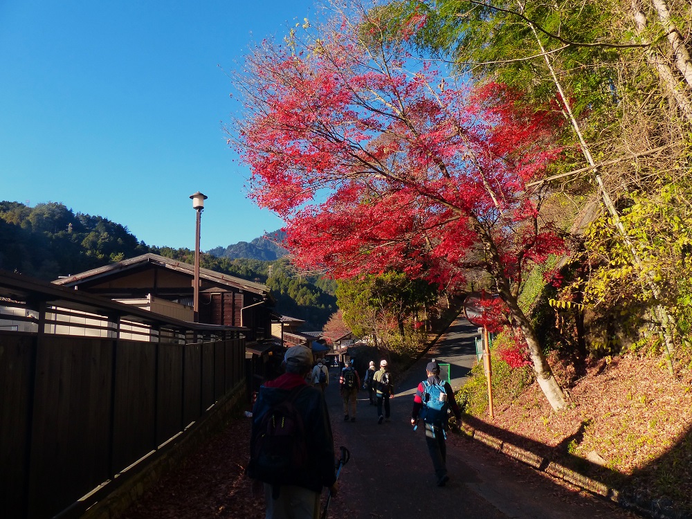 厳しい中山道(妻籠、馬籠)の中、精鋭8名の頑張りと道中の素晴らしい紅葉?が見事でした。