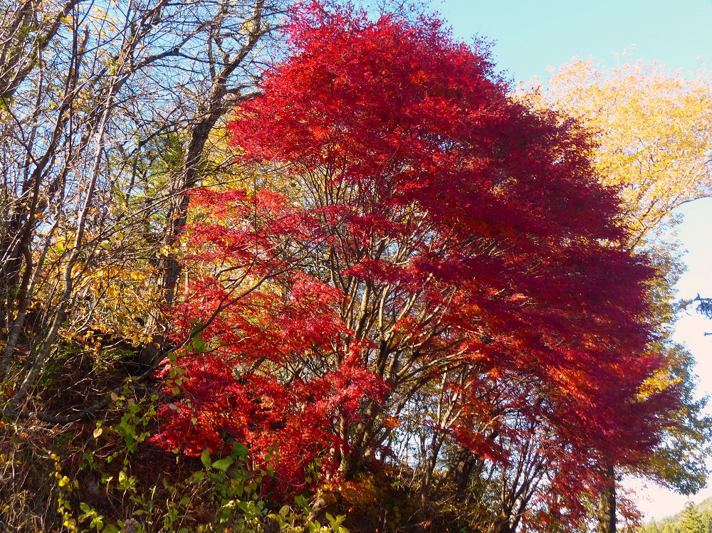 日本晴れの一日、紅葉も事前情報とは真逆”見頃”の紅や黄色に染まるシーンを愛でることができました。