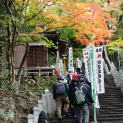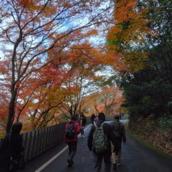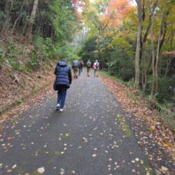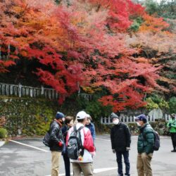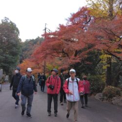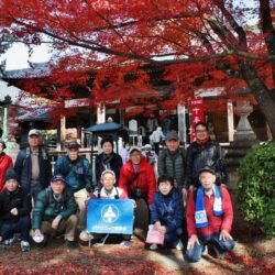 名鉄 犬山公園駅をスタートし、先ず185号線の側道を通り、途中真っ赤に紅葉したもみじが並ぶ氷室の公園にて、休息と紅葉を楽しみ、続いて1,000本のもみじが紅葉する寂光院参道を登り、観音堂に到着しました。