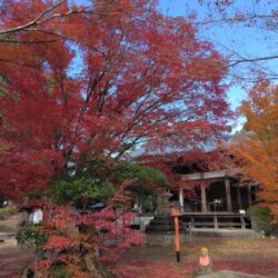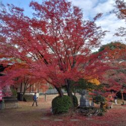本堂では紅葉真っ盛りの周辺、山下のもみじに感動しました。
