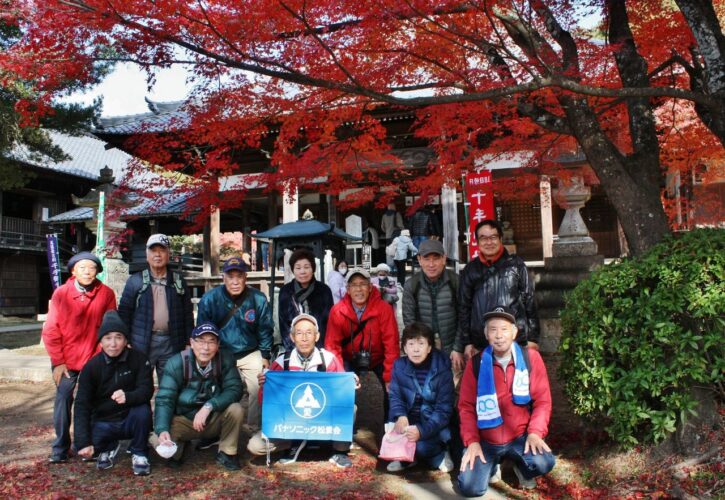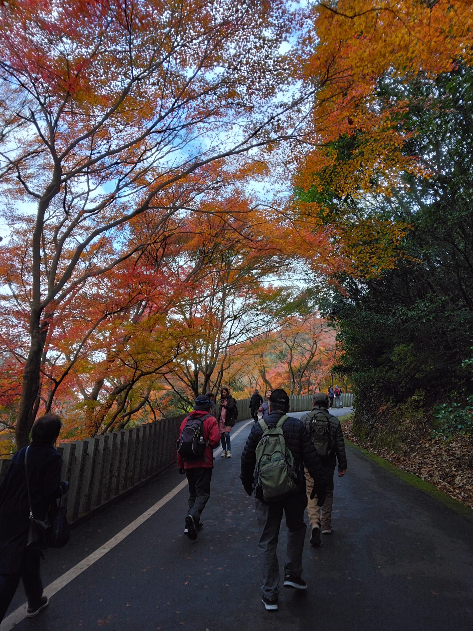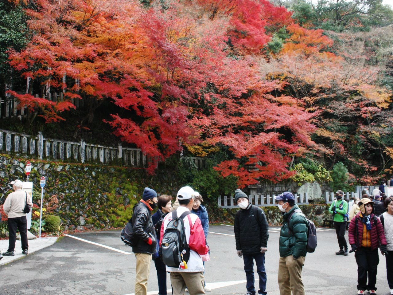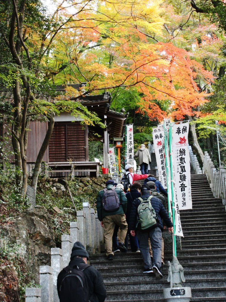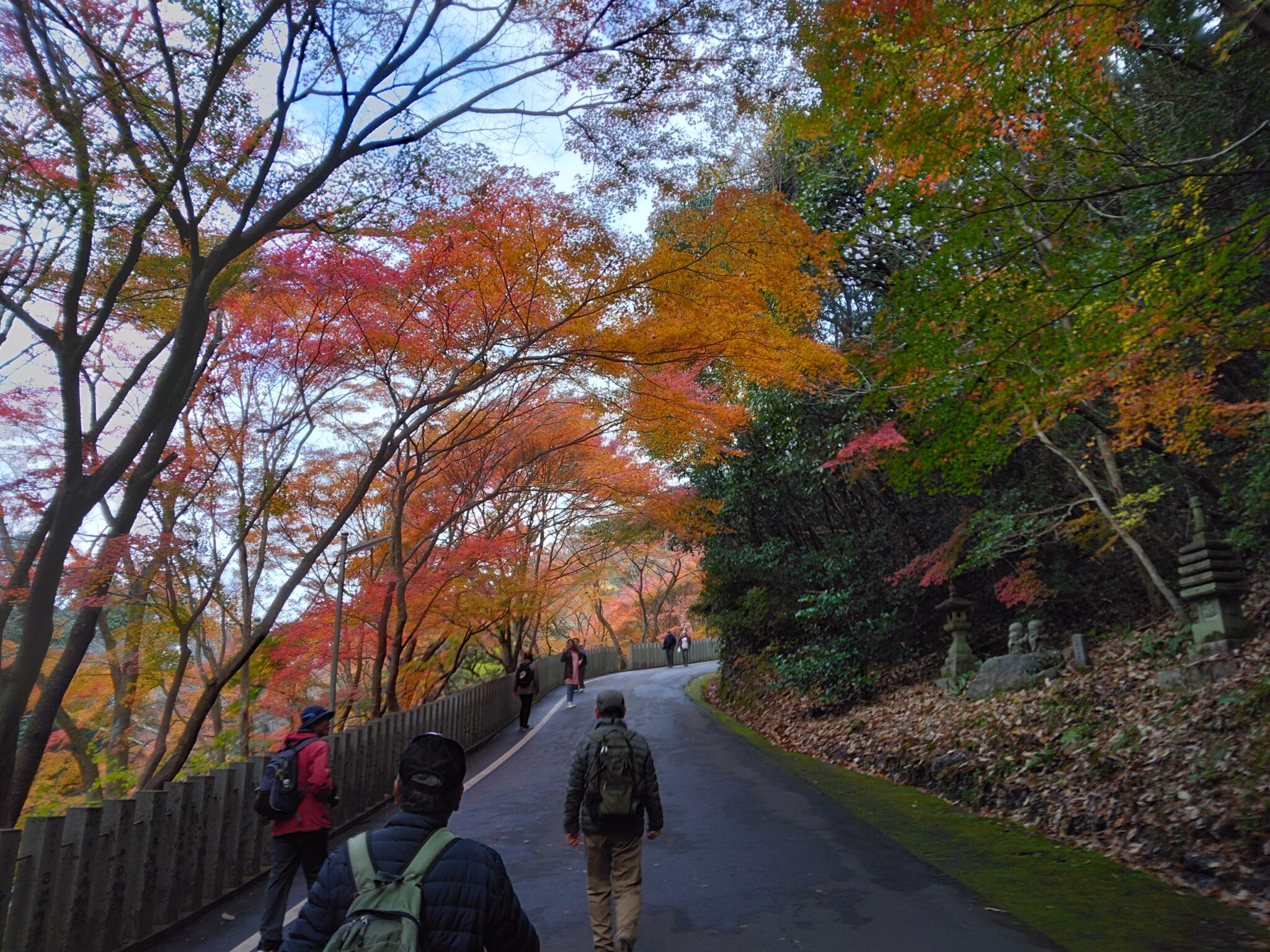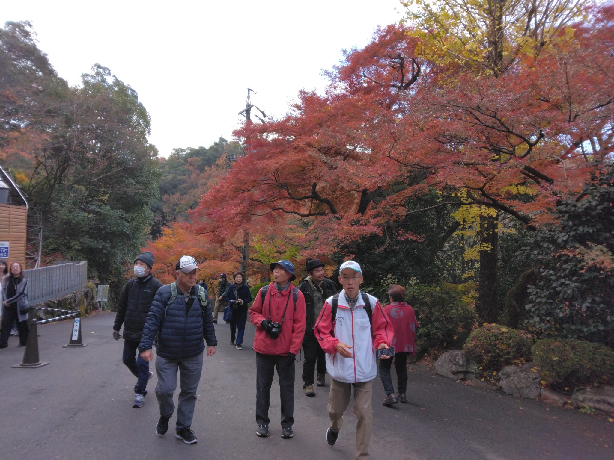 名鉄 犬山公園駅をスタートし、先ず185号線の側道を通り、途中真っ赤に紅葉したもみじが並ぶ氷室の公園にて、休息と紅葉を楽しみ、続いて1,000本のもみじが紅葉する寂光院参道を登り、観音堂に到着しました。