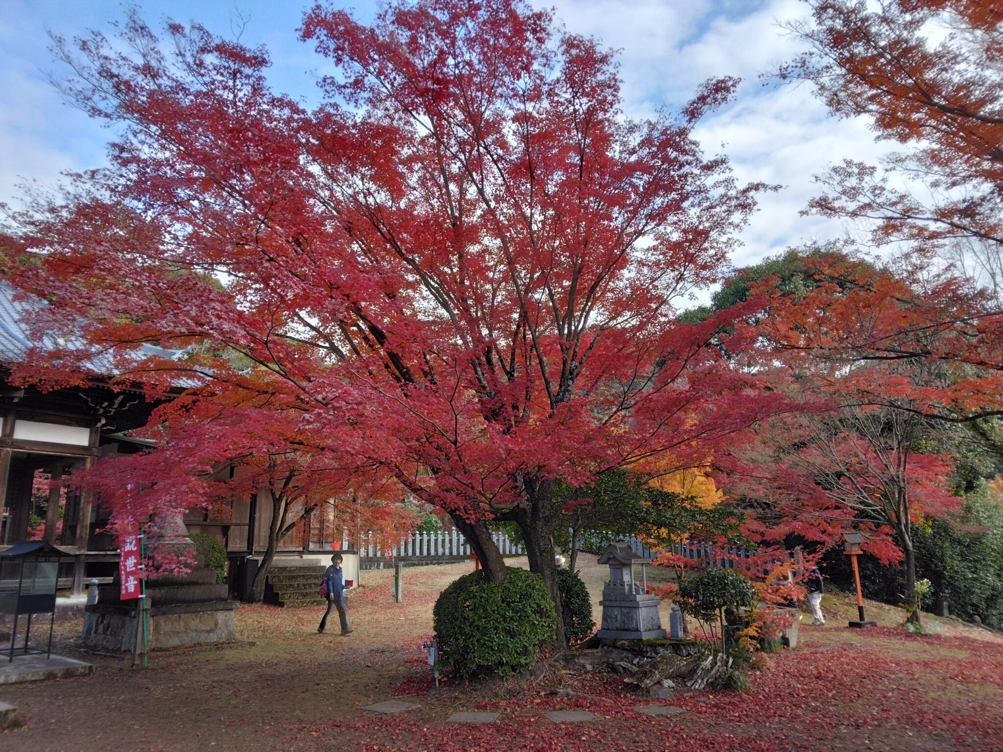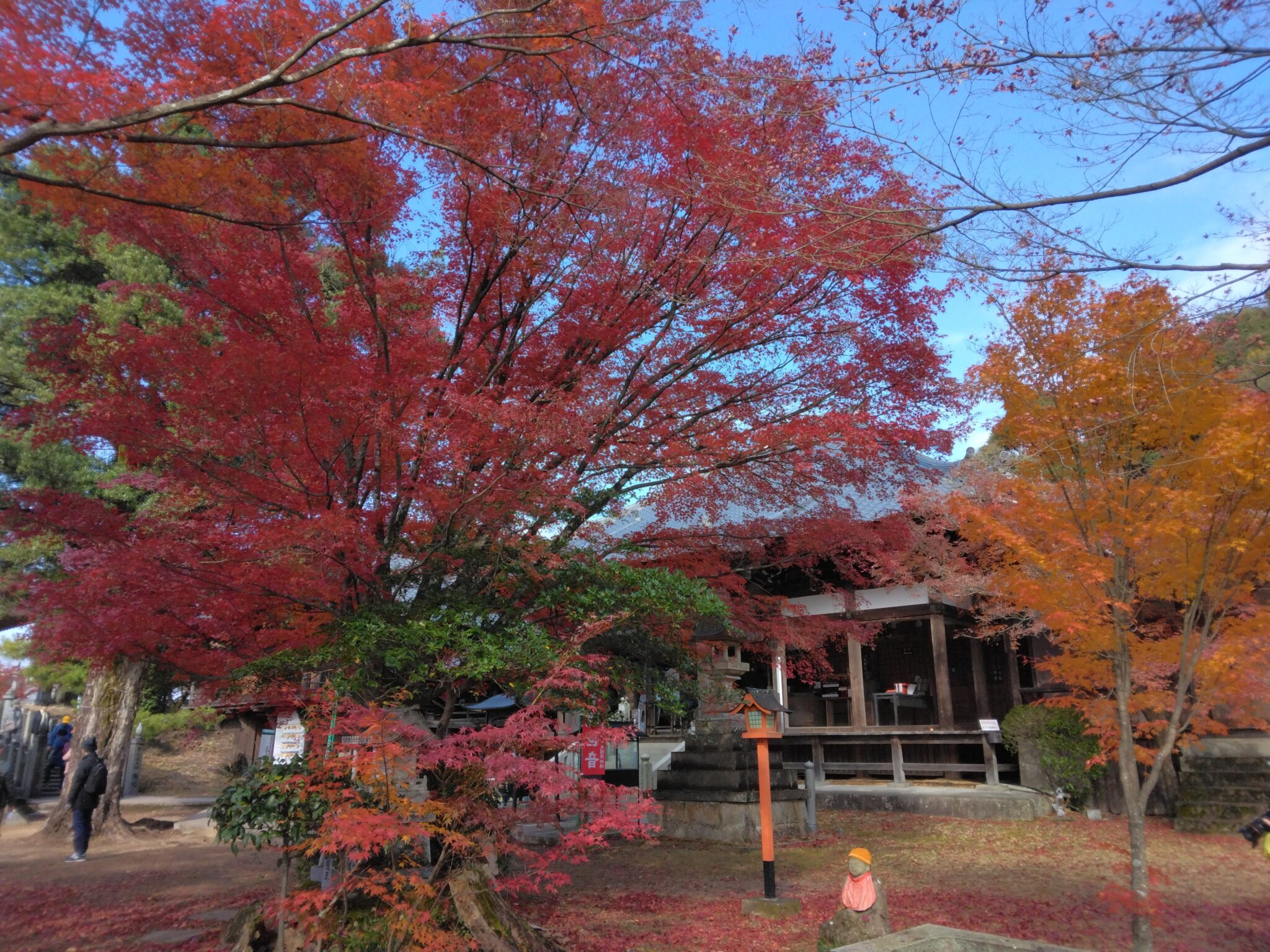 本堂では紅葉真っ盛りの周辺、山下のもみじに感動しました。