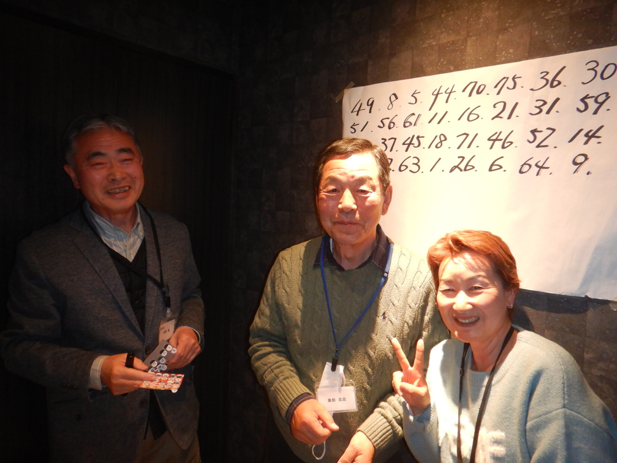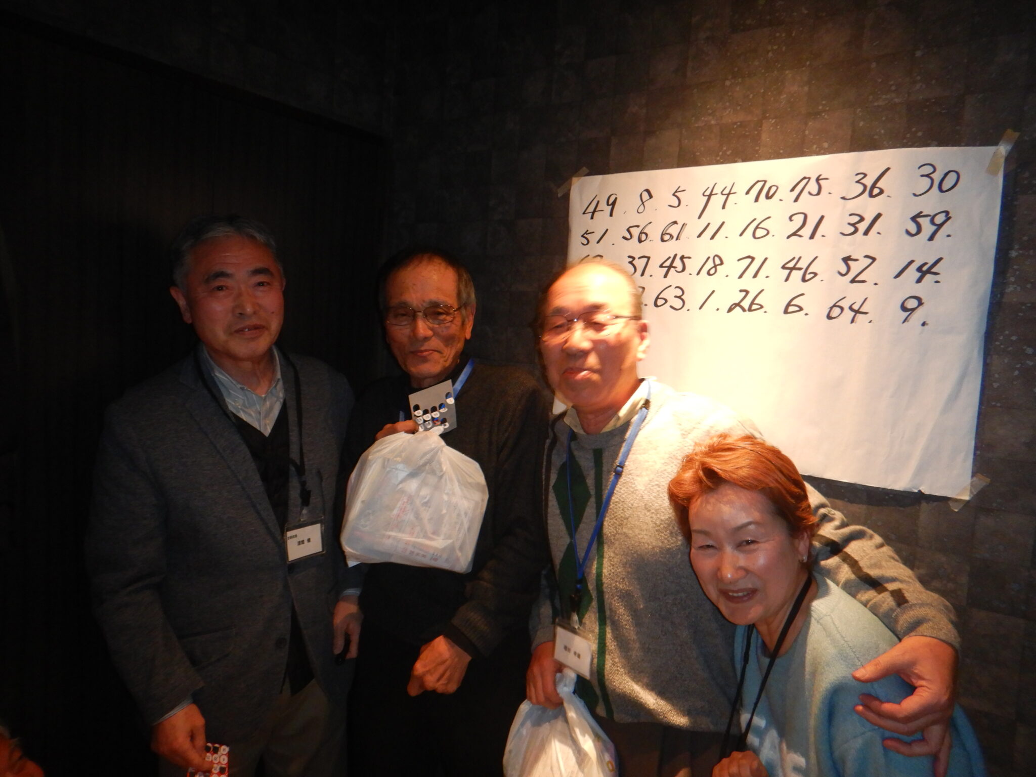 恒例のビンゴゲームで楽しんで、中締めを黒畑一志さんの一本締めで、次回、また元気に再会しましょうとのことでお開きしました。