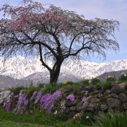 - 2024/03 花桃と雪山 宮垣 俊樹