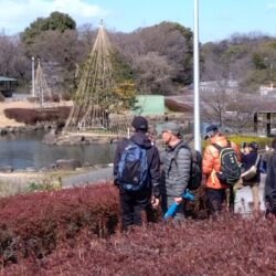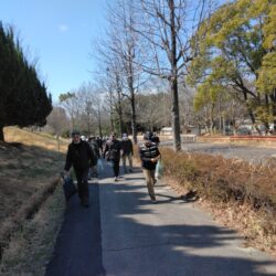 花見のタイミングの難しさを痛感。雪吊りの庭園を眺めながら大高緑地公園内より歩みを進め全員が笑顔で「名鉄 左京山駅」にゴール!!! 解散