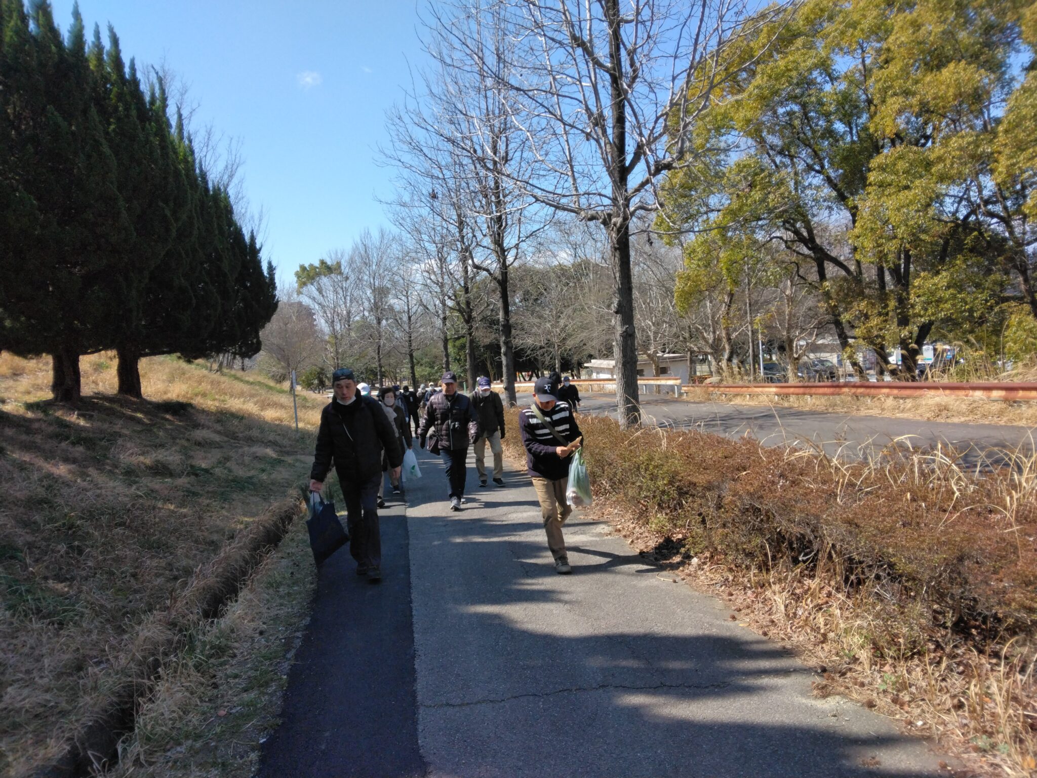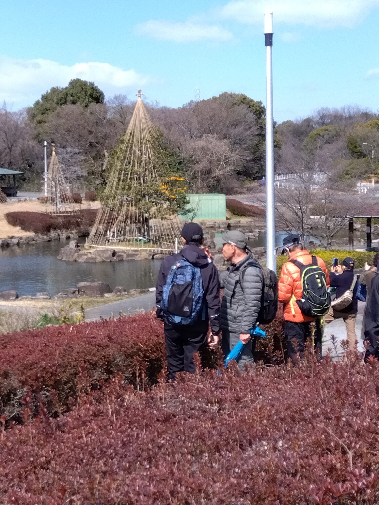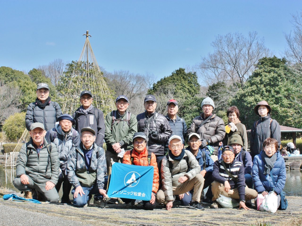 花見のタイミングの難しさを痛感。雪吊りの庭園を眺めながら大高緑地公園内より歩みを進め全員が笑顔で「名鉄 左京山駅」にゴール!!! 解散