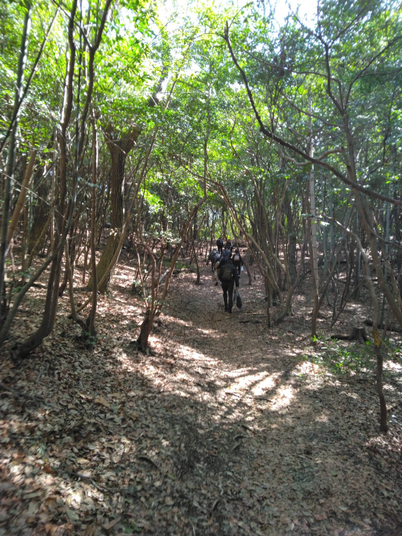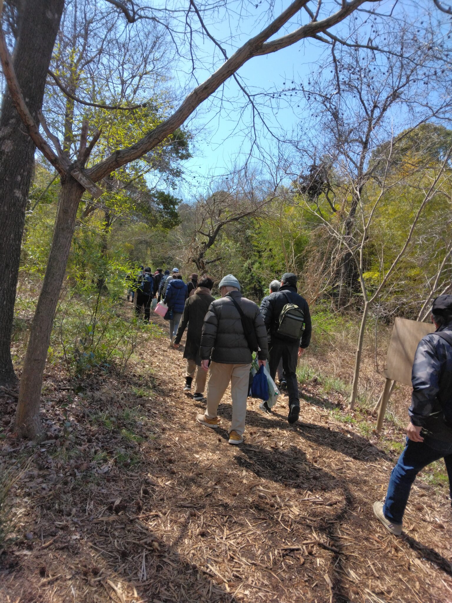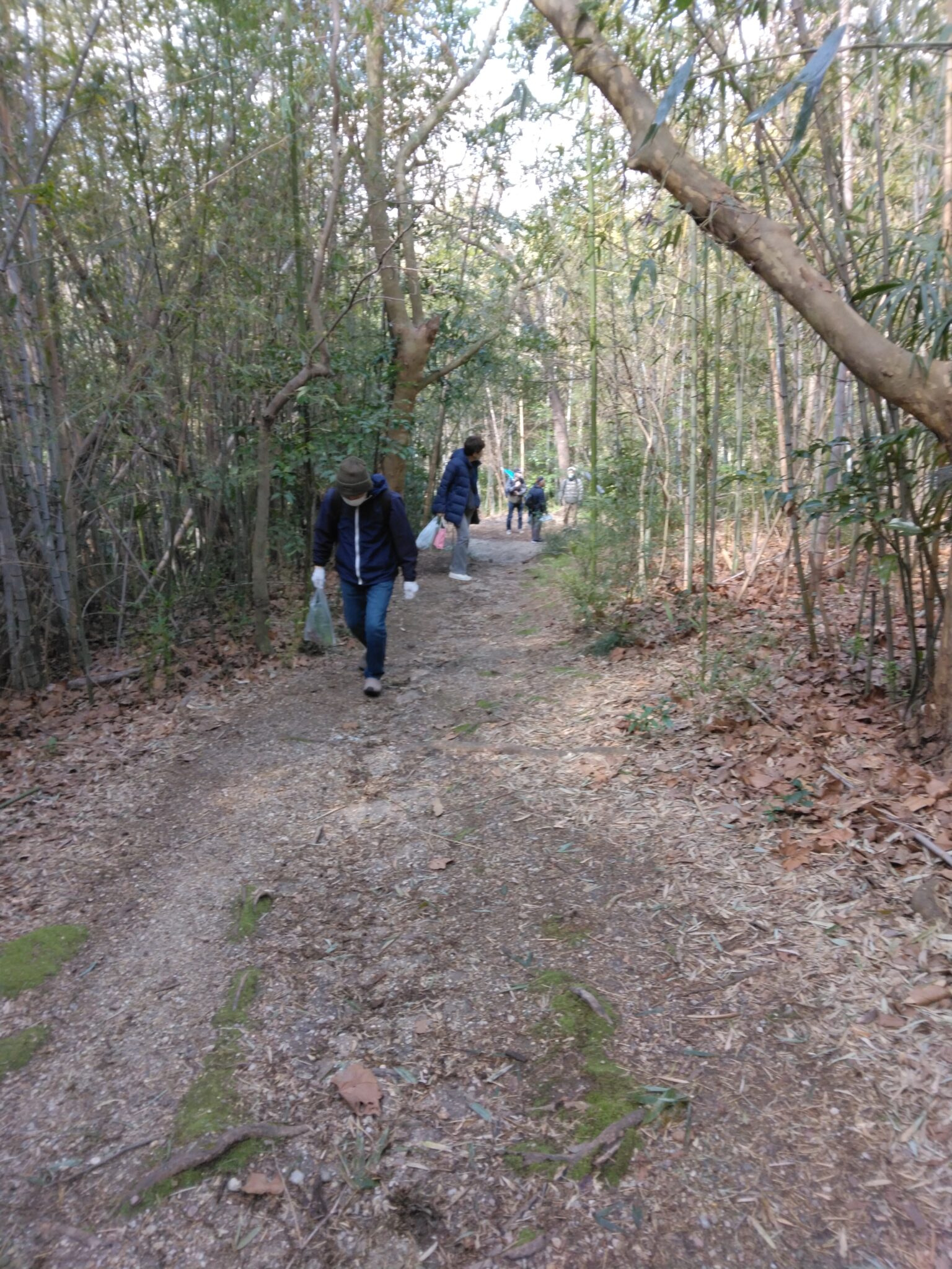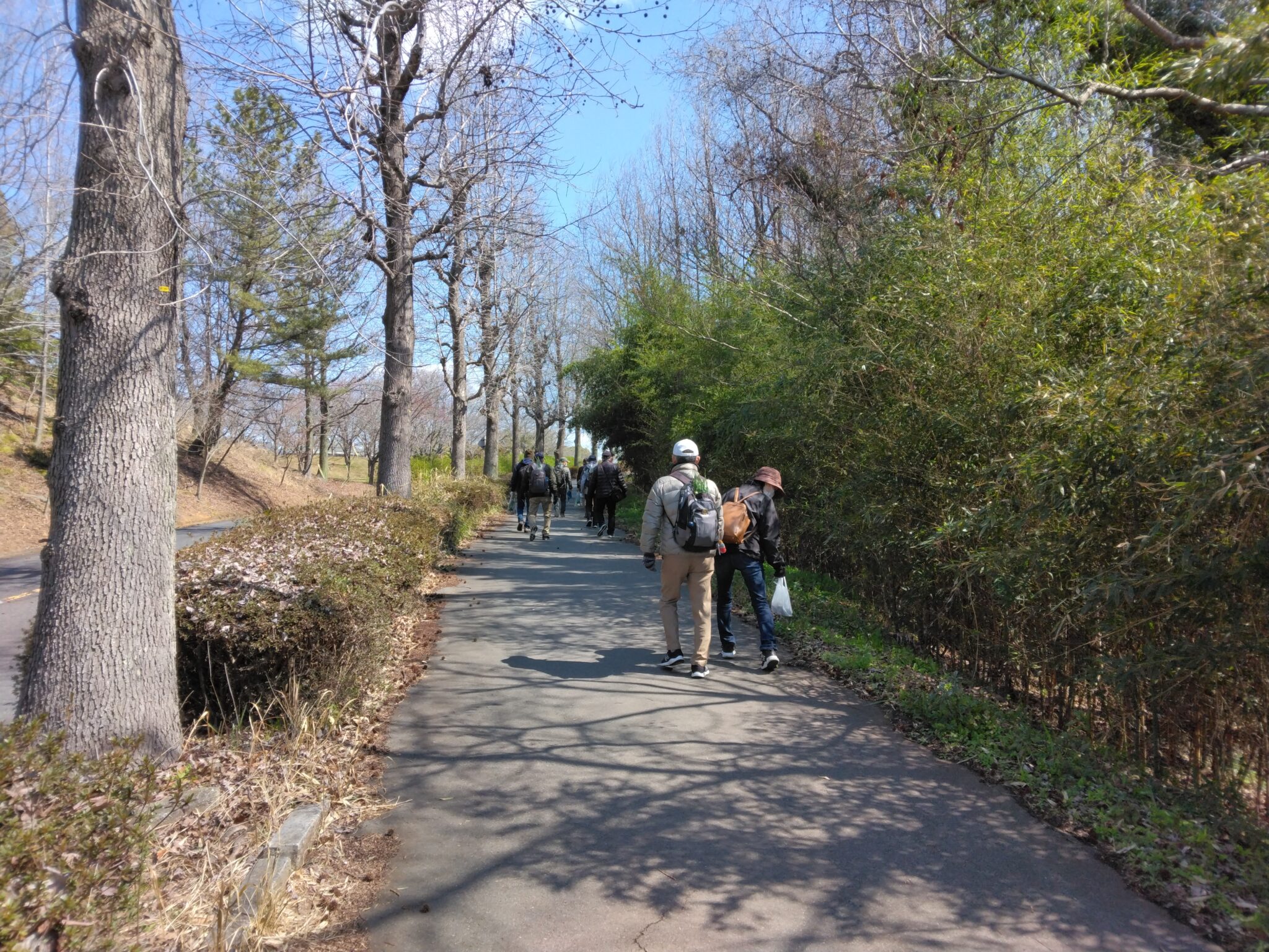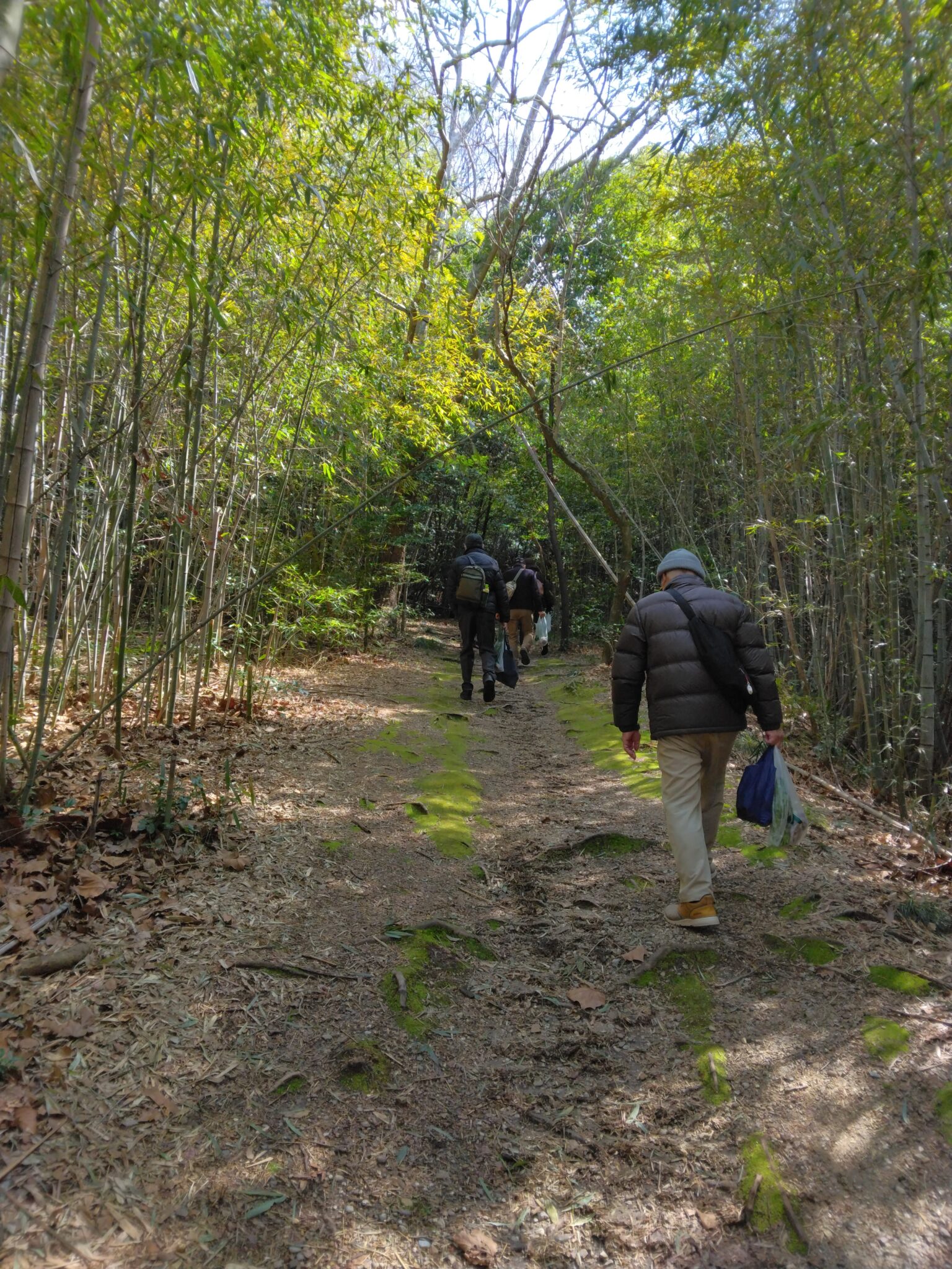 公園までは、ここからひと頑張りで到着竹林散策小径の風情と木漏れ日の陽春を満喫し!