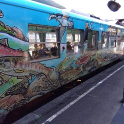 レポートの続きですが、帰りの電車が、美濃市の梅山駅横の、武義高校の生徒が大勢乗って来て、たちまち車内は、満員、我々の前に新一年生、聞くと本日が高校生活初授業と、そこからほろ酔いぎみながら、人生のウヲチクを゙ろうろうと、ゼツ弁、新一年生は、しんみょうに、うんうんと合いづち、分かる、はい、の返事、困り顔やで、おじいちゃんやめて、そうこうするうち、生徒達が、降りる準備、別れぎわに