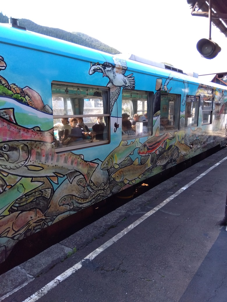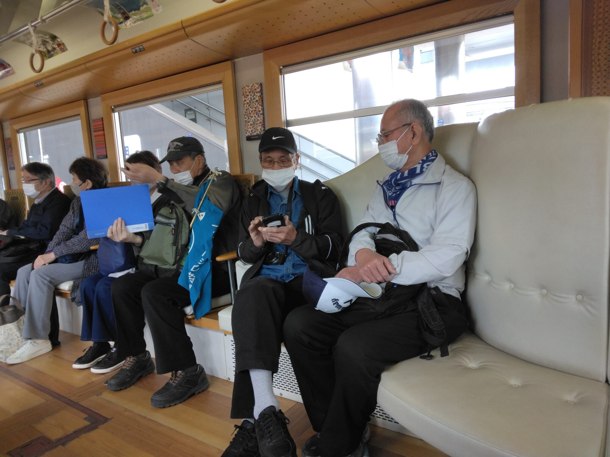 レポートの続きですが、帰りの電車が、美濃市の梅山駅横の、武義高校の生徒が大勢乗って来て、たちまち車内は、満員、我々の前に新一年生、聞くと本日が高校生活初授業と、そこからほろ酔いぎみながら、人生のウヲチクを゙ろうろうと、ゼツ弁、新一年生は、しんみょうに、うんうんと合いづち、分かる、はい、の返事、困り顔やで、おじいちゃんやめて、そうこうするうち、生徒達が、降りる準備、別れぎわに