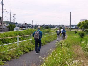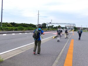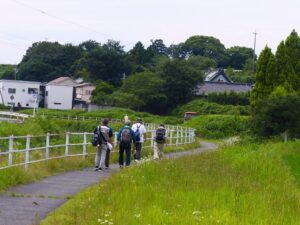 参加者会員の皆さんお疲れ様でした。梅雨の狭間の例会、湿度の高い曇り空の中で少人数の6名が程よく吹く風に背中を押され19キロの何時もより長い距離を途中目的地を行き過ぎるというアクシデントも有ましたが元気に巡礼踏破することができました。幹事の皆さんありがとうございました。