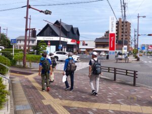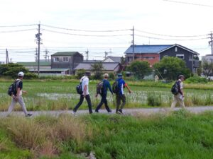 ミーティング後吹き渡る涼風に背中を押され、歩き遍路出立しました。