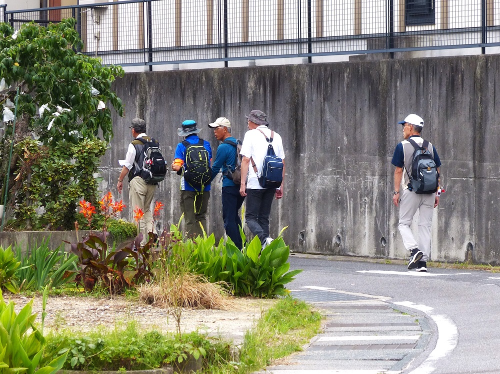 参加者会員の皆さんお疲れ様でした。梅雨の狭間の例会、湿度の高い曇り空の中で少人数の6名が程よく吹く風に背中を押され19キロの何時もより長い距離を途中目的地を行き過ぎるというアクシデントも有ましたが元気に巡礼踏破することができました。幹事の皆さんありがとうございました。
