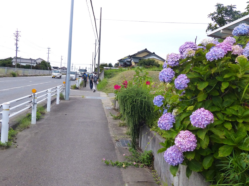 参加者会員の皆さんお疲れ様でした。梅雨の狭間の例会、湿度の高い曇り空の中で少人数の6名が程よく吹く風に背中を押され19キロの何時もより長い距離を元気に巡礼踏破することができました。幹事の皆さんありがとうございました。