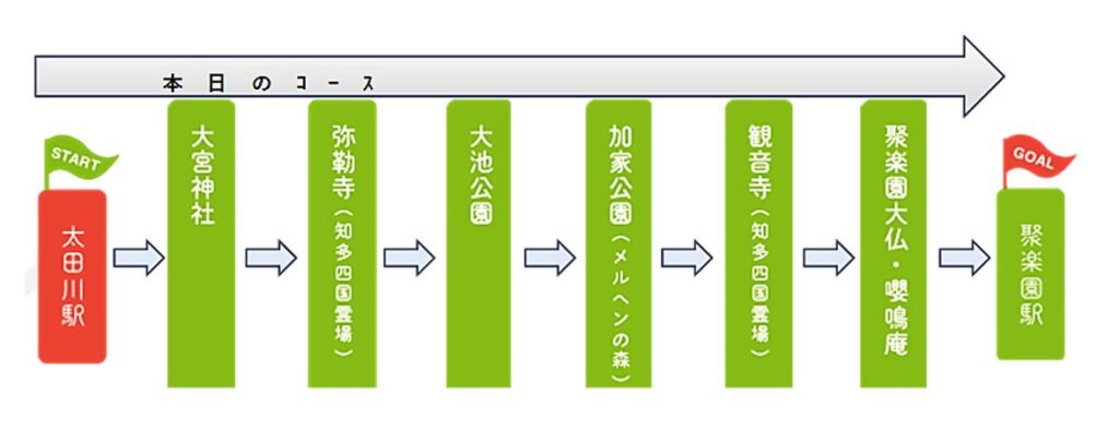 コースも 大池公園~聚楽園(大仏)まで 緑地帯が繋がり、知多四国八十八箇所霊場 弥勒寺(83番札所)・観音寺(86番札所)と