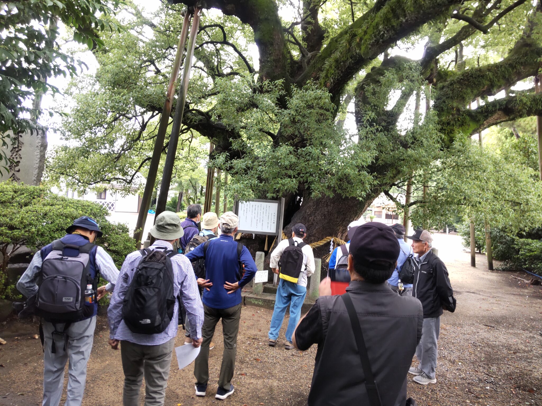 東海市は二代尾張藩主徳川光友が横須賀御殿を造営。以降、城下町としての扱いを受け繁栄現在は鉄鋼や化学素材の産業都市である太田川駅に集合 10時30出発し大宮神社・神木(楠王大龍神)樹齢800年以上の大楠を参拝、幹周囲約10㍍ 枝張22㍍から24㍍巨木である、感嘆。