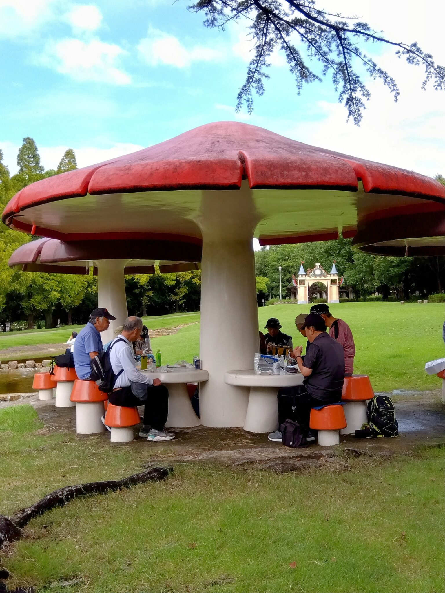 途中、大池公園ふれあい動物公園を経て、家計公園(メルヘンの森)で昼食タイム。