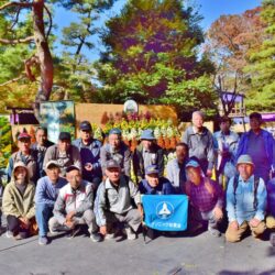 締めは、岐阜公園噴水の前で、岐阜城、菊人形展を背景にして全員写真を撮り終了しました。