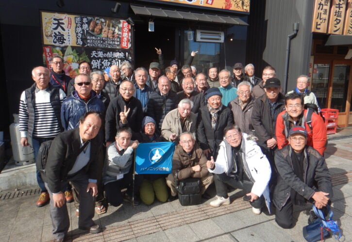 参加者の皆さん、役員の皆さん楽しいひと時をありがとうございました。40名を超える多くの会員の皆さんに参加頂き、外の寒さも吹っ飛ぶ熱気に包まれた懇親交流ができ、非常に有意義な懇親会合となりました。知り合いの仲間やグループの皆さんに声を掛けて参加頂いた皆さんに感謝します。乾杯後に野田会員より病気療養中の仲間への寒波の提案が有り、多くの皆さんのご協力が有りましたが、参加できた私達は元気に参加できたことに感謝し、療養中の会員の皆さんの回復を願うばかりです。参加できなかった人に懇親会の良さをPRするとともに、次回もまた元気に会えるのを楽しみに松愛会活動をしていきたいと思います。設営いただいた役員幹事の皆さんありがとうございました。