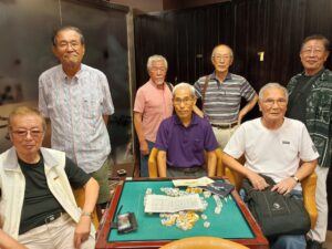 今月は台風の影響で1週間遅れの開催でした。植村さんは3人打ちで点数を稼ぎ優勝、峠田さんは2ヶ月連続の準優勝でした。